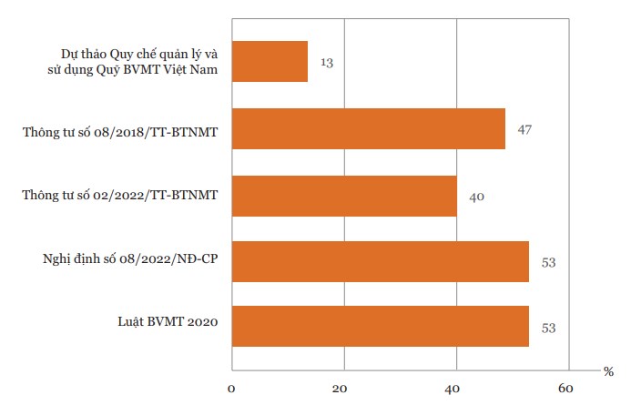 • Trên 50% doanh nghiệp được khảo sát hiểu biết về quy định liên quan đến tái chế chất thải nhựa trong Luật BVMT 2020 và Nghị định 08/2022/NĐ-CP. Các doanh nghiệp cơ bản đã có sự hiểu biết về quy định liên quan tại Thông tư 08/2018/TT-BTNMT ban hành quy chuẩn kỹ thuật quốc gia về môi trường (QCVN 32:2018/BTNMT - đối với phế liệu nhựa nhập khẩu làm nguyên liệu sản xuất) và Thông tư 02/2022/TT-BTNMT quy định chi tiết thi hành một số điều của Luật BVMT 2020.