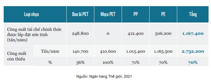 Hình 2: Công suất lắp đặt tái chế nhựa chính thức và công suất còn thiếu