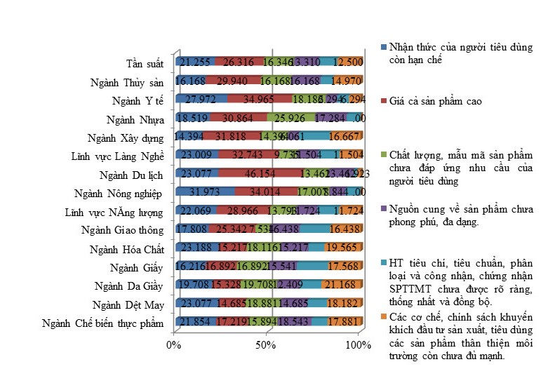 - Ngoài ra, một trong những nguyên nhân trở thành rào cản cho quá trình phát triển thị trường HHTTMT ở nước ta là do quá trình nhận thức về bảo vệ môi trường nói chung và tác động tích cực của HHTTMT đối với người tiêu dùng còn hạn chế. Các DN vẫn chưa mặn mà với các loại nhãn, giấy chứng nhận do các cơ quan chức năng cấp bởi bài toán giữa lợi nhuận vẫn là rào cản trong sản xuất các loại HHTTMT.