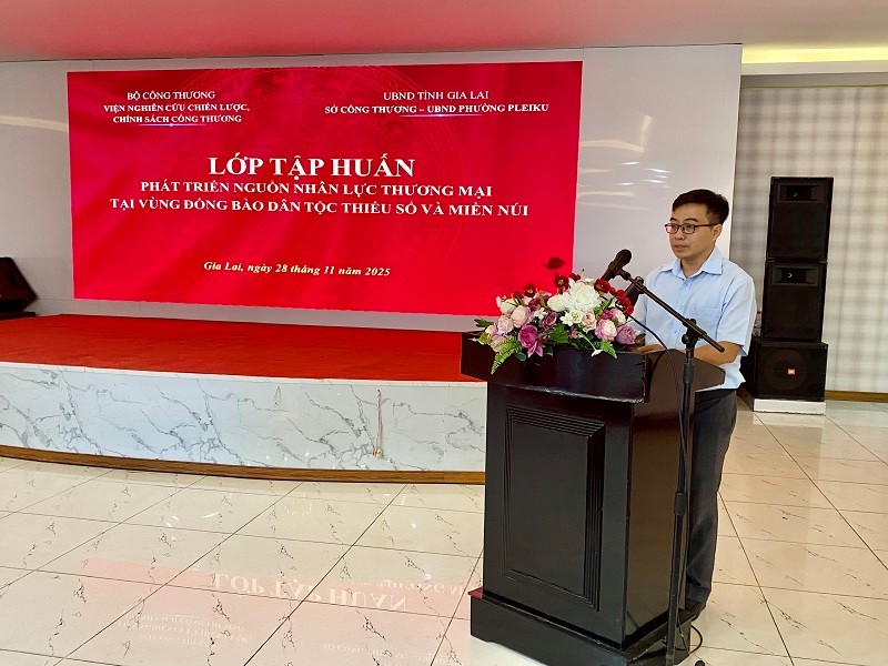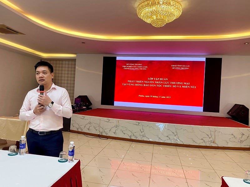 Ngày 28 tháng 11 năm 2025, tại phường Pleiku, tỉnh Gia Lai, Viện Nghiên cứu Chiến lược, Chính sách Công Thương phối hợp với Sở Công Thương tỉnh Gia Lai tổ chức khai giảng lớp “Tập huấn phát triển nguồn nhân lực thương mại ở vùng đồng bào dân tộc thiểu số và miền núi”.