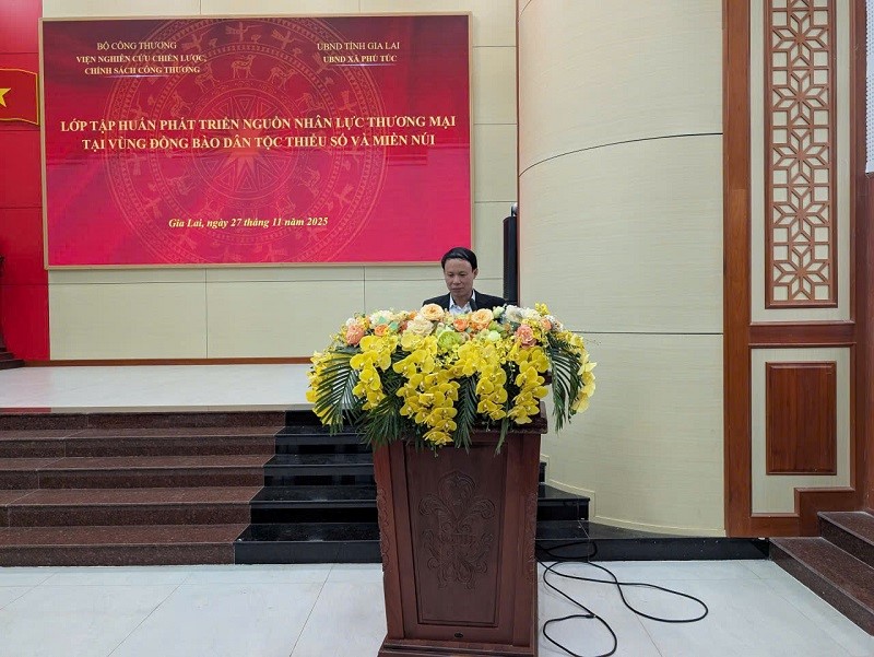Ngày 27 tháng 11 năm 2025, tại xã Phú Túc, tỉnh Gia Lai, Viện Nghiên cứu Chiến lược, Chính sách Công Thương phối hợp với Sở Công Thương tỉnh Gia Lai tổ chức khai giảng lớp “Tập huấn phát triển nguồn nhân lực thương mại ở vùng đồng bào dân tộc thiểu số và miền núi”.