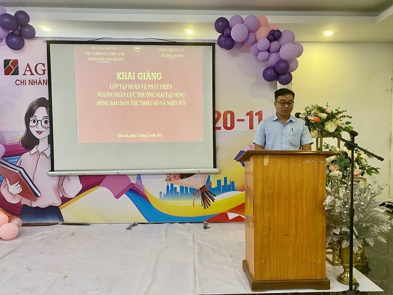 Ngày 27 tháng 11 năm 2025, Viện Nghiên cứu Chiến lược, Chính sách Công Thương phối hợp với Sở Công Thương tỉnh Gia Lai và Phòng Kinh tế xã Chư Pưh tổ chức lễ khai giảng lớp “Tập huấn phát triển nguồn nhân lực thương mại tại vùng đồng bào dân tộc thiểu số và miền núi” tại xã Chư Pưh, Tỉnh Gia Lai