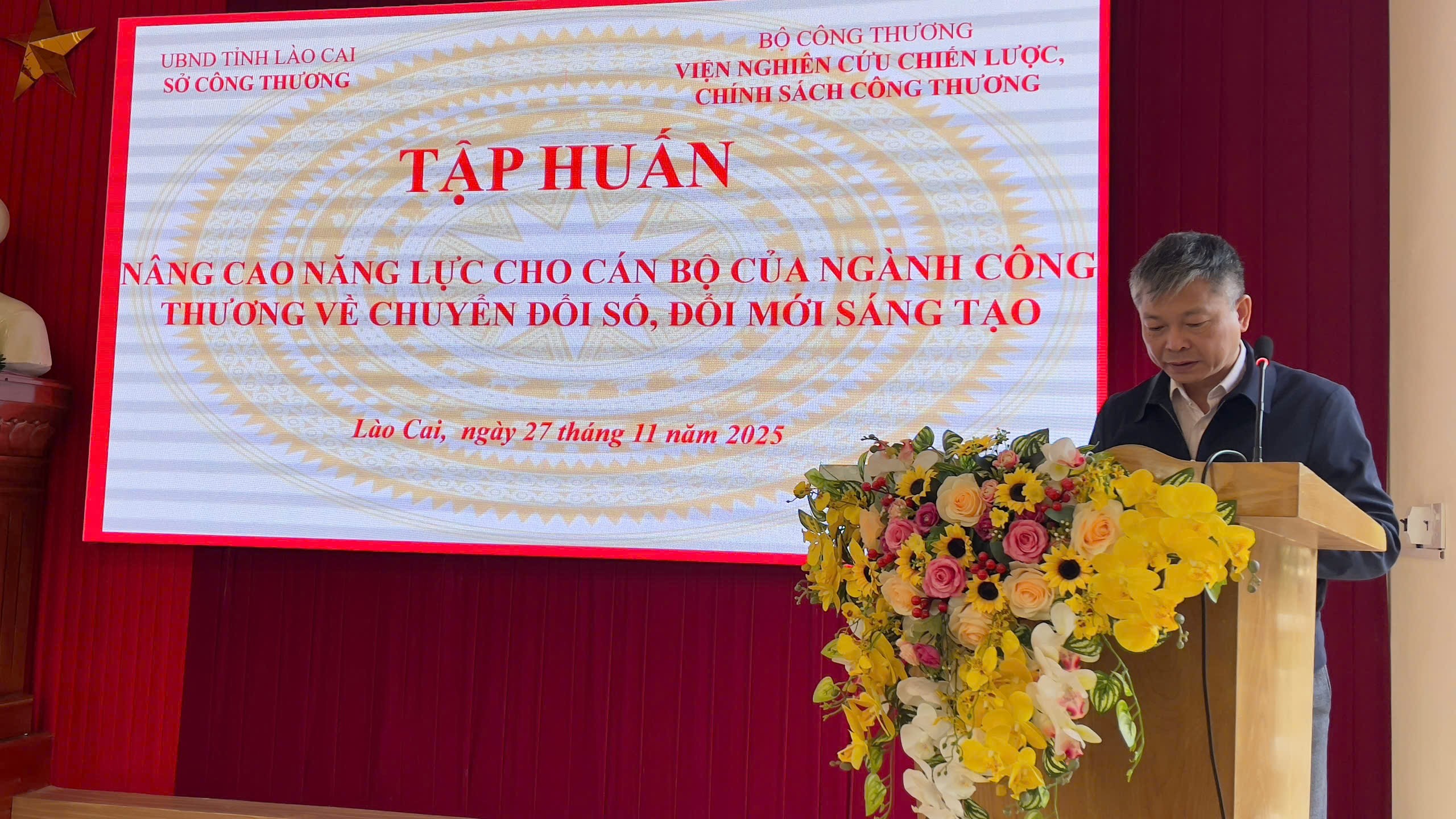 Ngày 27/11/2025, Viện Nghiên cứu Chiến lược, Chính sách Công Thương (Bộ Công Thương) phối hợp với Sở Công Thương tỉnh Lào Cai tổ chức lớp tập huấn “Nâng cao năng lực chuyển đổi số, đổi mới sáng tạo phục vụ thực hiện Đề án tái cơ cấu ngành Công Thương đến năm 2030”. Chương trình thu hút hơn 30 học viên là cán bộ, công chức, viên chức và đại diện doanh nghiệp trong lĩnh vực công nghiệp và thương mại trên địa bàn tỉnh.