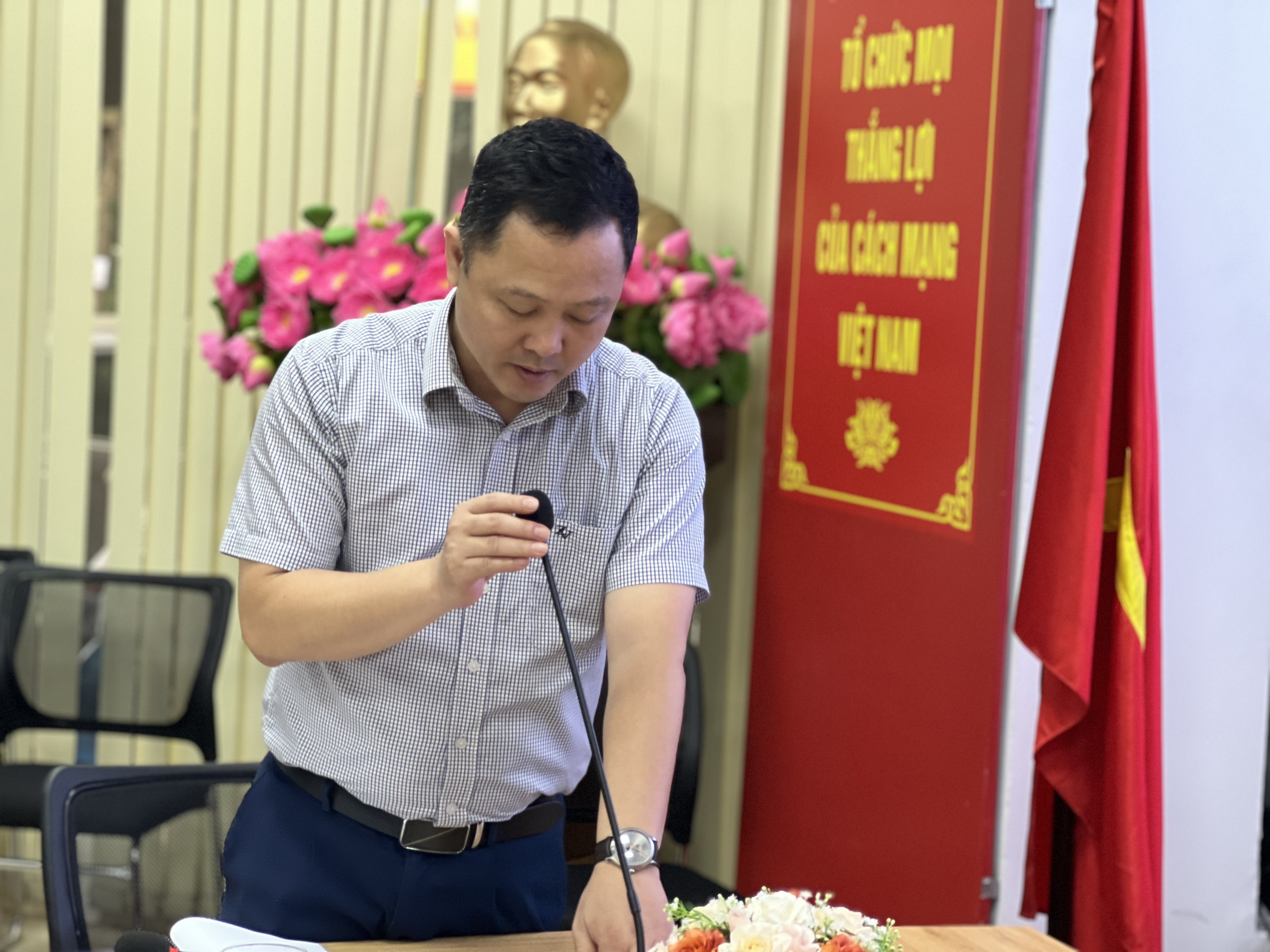 Sau khi đại diện Phòng Quản lý khoa học và đào tạo tuyên bố lý do, giới thiệu đại biểu tham dự, PGS.TS. Đinh Văn Thành đã chủ trì và điều hành cuộc họp.