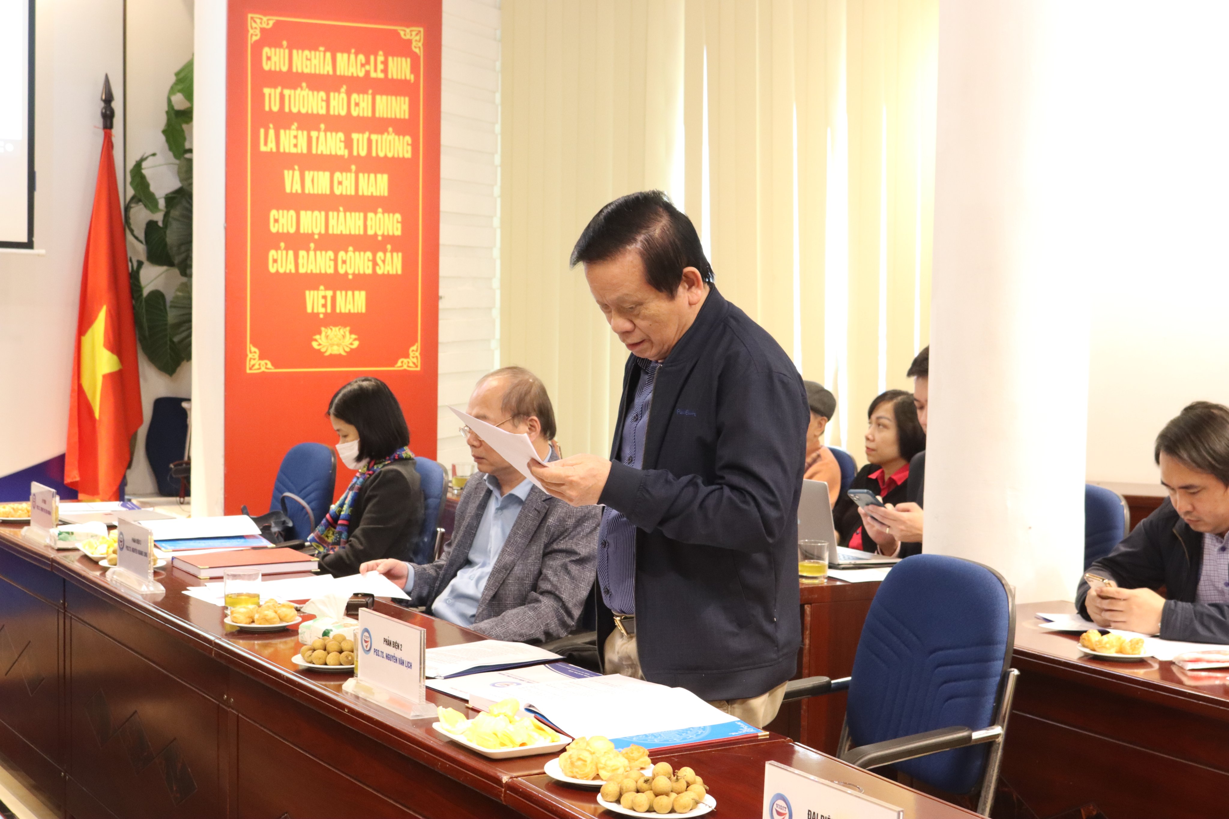 Phát biểu kết luận, PGS.TS. Đinh Văn Thành - Chủ tịch hội đồng khẳng định tên luận án “Đẩy mạnh xuất khẩu mặt hàng da giầy vào thị trường EU trong tiến trình thực hiện Hiệp định thương mại tự do Việt Nam - EU (EVFTA)” phù hợp với nội dung và mã số chuyên ngành, luận án có tính cấp thiết với thực tiễn, không trùng với các luận án khác đã được bảo vệ.