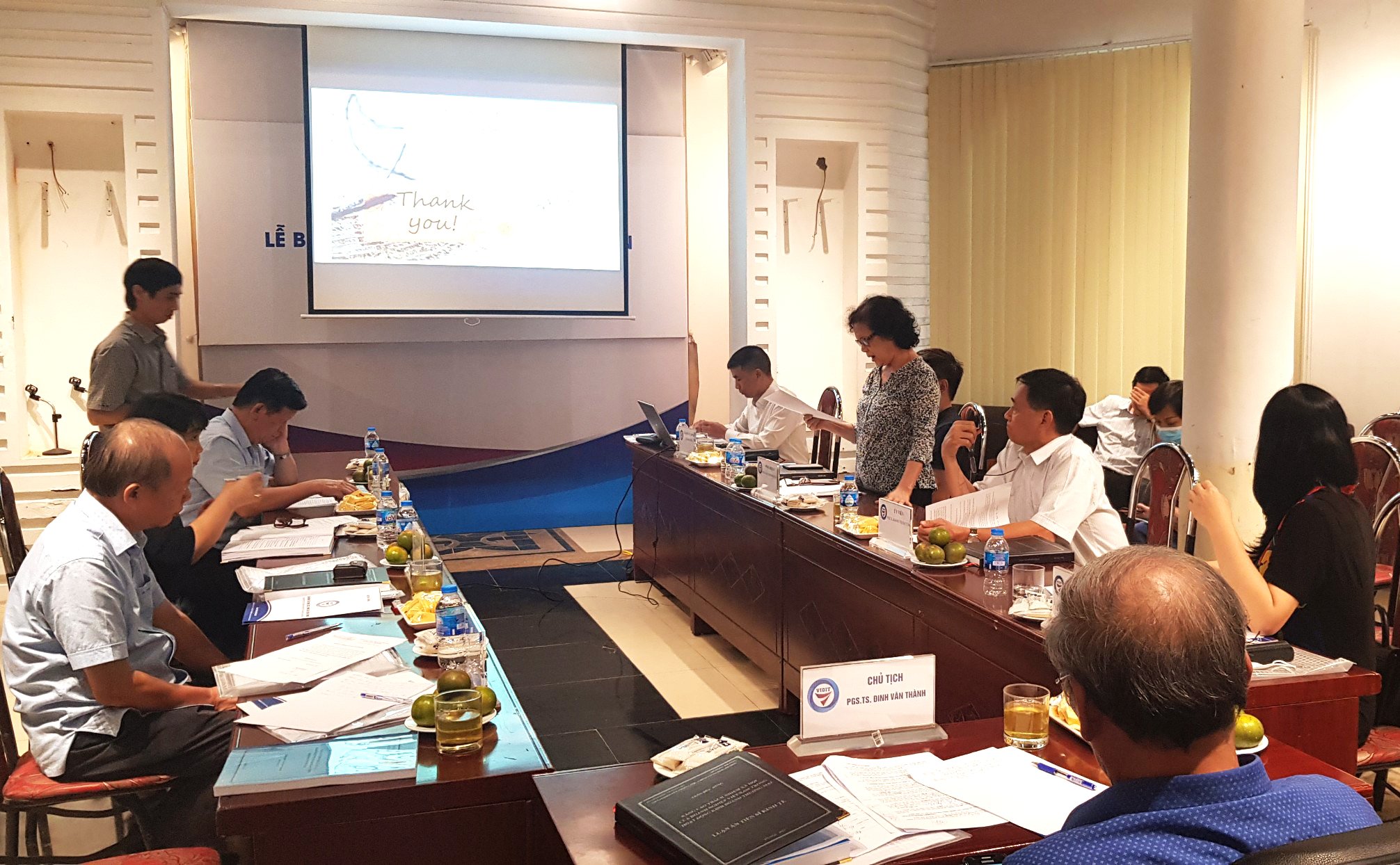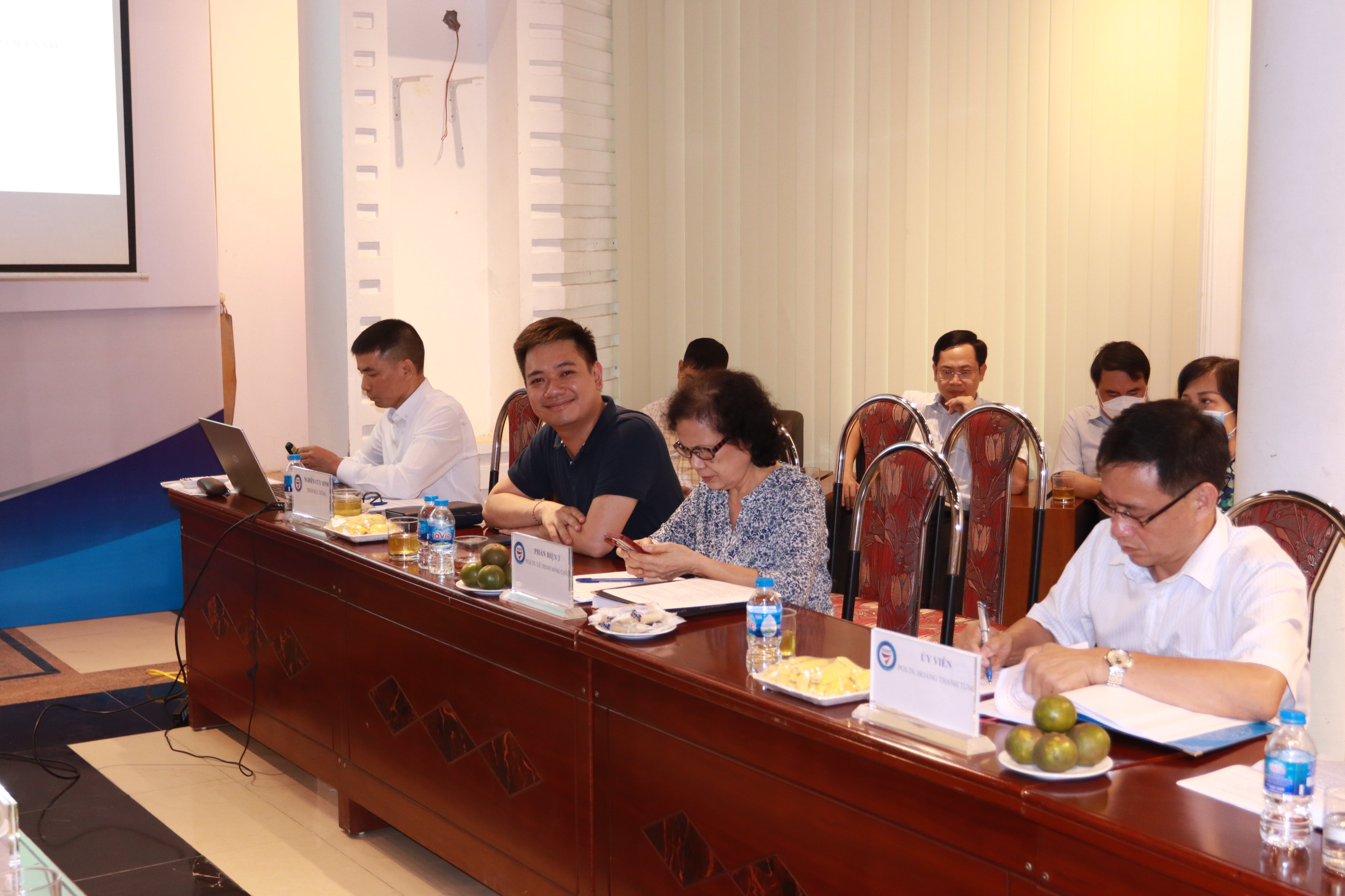 Hội đồng đánh giá luận án tiến sỹ cấp Viện gồm 7 thành viên: PGS.TS. Đinh Văn Thành, Viện Nghiên cứu Chiến lược, Chính sách Công Thương - Chủ tịch hội đồng; PGS.TS. Nguyễn Hoàng Long, Trường ĐH Thương mại – Phản biện 1; PGS.TS. Phạm Thu Hương - Trường ĐH Ngoại Thương - phản biện 2; PGS.TS. Lê Trịnh Minh Châu, Viện Nghiên cứu Chiến lược, Chính sách Công Thương – phản biện 3; PGS.TS. Phạm Tố Uyên, Trường Đại học Kinh tế quốc dân - Ủy viên; PGS.TS. Hoàng Thanh Tùng, Trường ĐH Lao động – Xã hội - Ủy viên và TS. Lê Huy Khôi, Viện Nghiên cứu Chiến lược, Chính sách Công Thương - Ủy viên, thư ký hội đồng. Buổi đánh giá còn có sự tham dự của các giáo viên, các nhà khoa học và các nghiên cứu sinh của Viện.