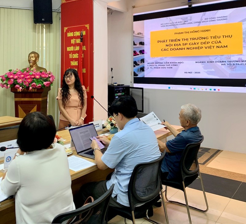 Sáng ngày 23/06/2025, tại Hội trường tầng 1, trụ sở của Viện số 17 Yết Kiêu, Phường Nguyễn Du, Quận Hai Bà Trưng, Hà Nội, Viện Nghiên cứu Chiến lược, Chính sách Công Thương đã tổ chức buổi bảo vệ Luận án tiến s cấp cơ sở với đề tài “Phát triển thị trường tiêu thụ nội địa sản phẩm giầy dép của các doanh nghiệp Việt Nam cho NCS. Phạm Thị Hồng Hạnh, chuyên ngành kinh doanh thương mại, mã số 9.34.01.21