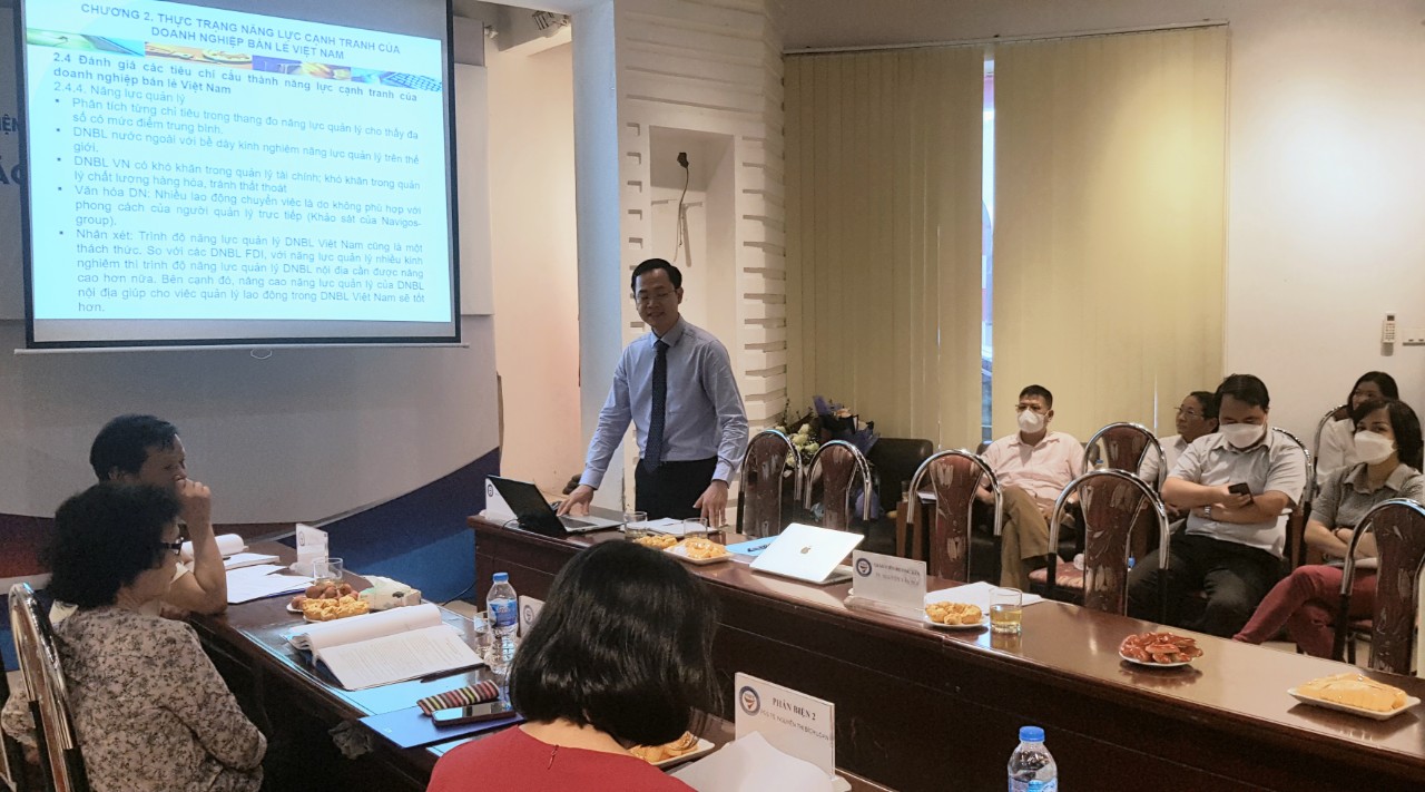 Phát biểu kết luận, PGS. TS. Đinh Văn Thành - Chủ tịch hội đồng khẳng định tên luận án “Giải pháp nâng cao năng lực cạnh tranh của doanh nghiệp bán lẻ Việt Nam tại thị trường trong nước” phù hợp với nội dung và mã số chuyên ngành, không trùng với các luận án khác đã được bảo vệ. Luận án đã phân tích, xác định các yếu tố ảnh hưởng tới năng lực cạnh tranh của doanh nghiệp bán lẻ Việt Nam và xây dựng bộ tiêu chí cấu thành năng lực cạnh tranh của doanh nghiệp bán lẻ Việt Nam, bao bồm: Năng lực phát triển mạng lưới; năng lực tài chính; năng lực về nguồn nhân lực; năng lực quản lý; năng lực cung cấp dịch vụ. Đồng thời, luận án đề xuất nhóm giải pháp nhằm nâng cao năng lực cạnh tranh của doanh nghiệp bán lẻ Việt Nam, bao gồm: (1) Nhóm giải pháp đối với các doanh nghiệp bán lẻ Việt Nam; (2) Nhóm giải pháp về phía Nhà nước.