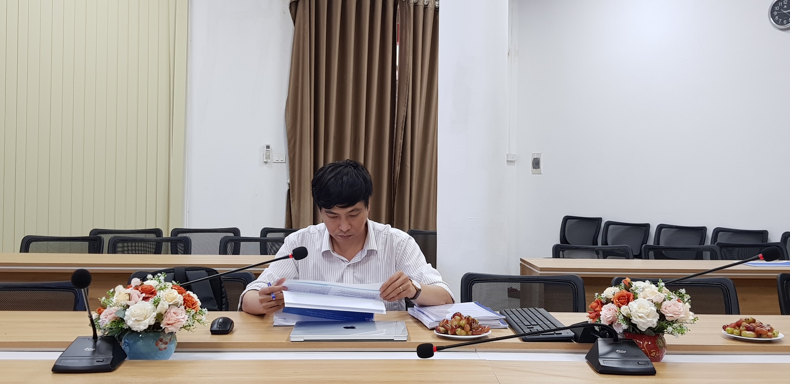 Sau khi Đại diện phòng Quản lý khoa học và đào tạo công bố Quyết định của Viện trưởng Viện Nghiên cứu chiến lược, chính sách Công Thương về việc thành lập Hội đồng chấm tiểu luận tổng quan cho NCS. Bùi Nguyễn Anh Tuấn, giới thiệu đại biểu tham dự, PGS. TS Đinh Văn Thành đã chủ trì buổi chấm 3 chuyên đề tiến sĩ.