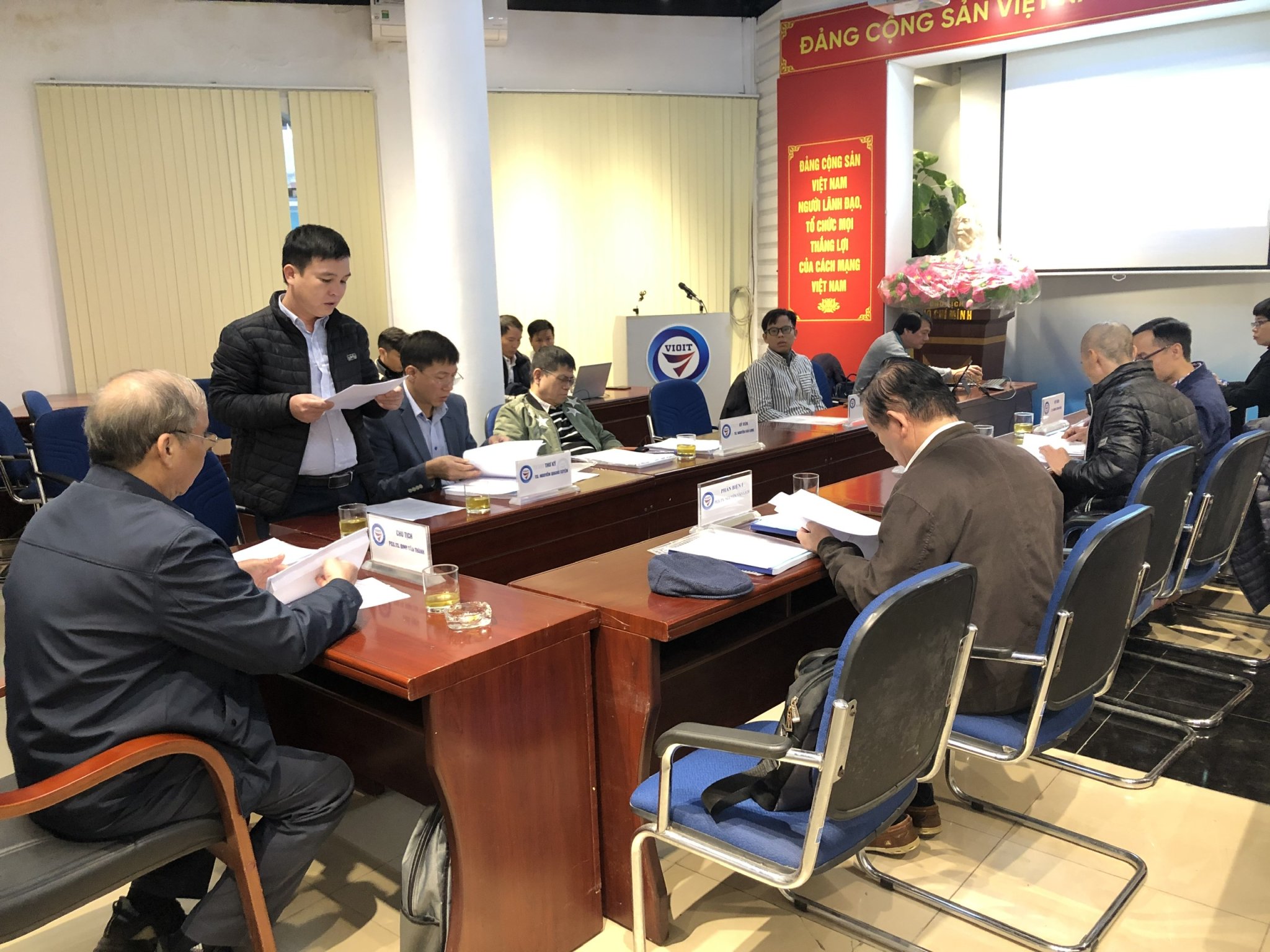 Đại diện phòng đào tạo quản lý khoa học và đào tạo sau đại học đọc quyết định số 992/QĐ-CLCT Viện Nghiên cứu chiến lược, chính sách Công Thương về việc thành lập Hội đồng tư vấn đánh giá, nghiệm thu cấp cơ sở nhiệm vụ năm 2022.