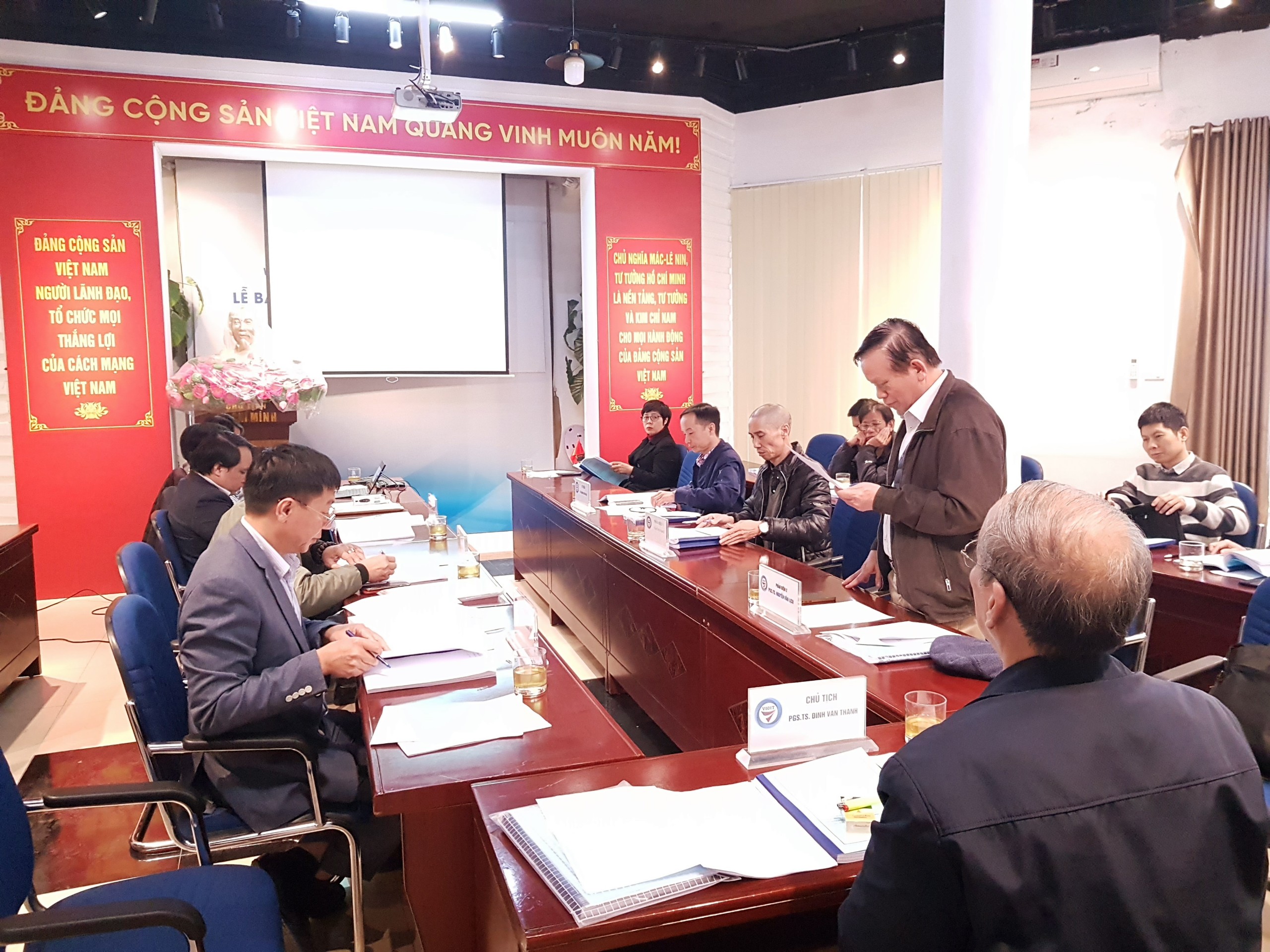 Hội đồng tư vấn đánh giá, nghiệm thu được thành lập theo quyết định số: 993/QĐ-CLCT ban hành ngày 06/12/2022. Hội đồng nghiệm thu cấp Viện do PGS.TS Đinh Văn Thành - Chủ tịch hội đồng và các thành viên gồm: TS. Lê Huy Khôi - ủy viên phản biện 1; PGS.TS Nguyễn Văn Lịch - ủy viên phản biện 2; TS. Nguyễn Văn Long; TS. Vương Quang Lượng; TS. Đặng Công Hiến - ủy viên; TS. Nguyễn Quang Tuyển - Ủy viên thư ký. Ngoài ra, tham dự còn có các nhà khoa học trong viện và nhóm nghiên cứu nhiệm vụ.