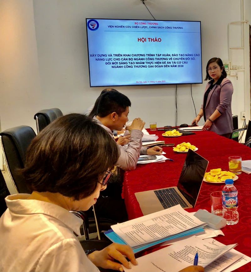 Chiều ngày 11 tháng 11 năm 2025, tại Hội trường tầng 2 - Viện Nghiên cứu Chiến lược, Chính sách Công Thương, số 17 Yết Kiêu, Hà Nội đã diễn ra Hội thảo góp ý cho tài liệu, khung chương trình thuộc nhiệm vụ “Xây dựng và triển khai chương trình tập huấn, đào tạo nâng cao năng lực cho cán bộ ngành Công Thương về chuyển đổi số, đổi mới sáng tạo nhằm thực hiện Đề án tái cơ cấu ngành Công Thương giai đoạn đến năm 2030” do ThS. Nguyễn Thanh Phượng - Trung tâm Đào tạo, bồi dưỡng Công Thương - Viện Nghiên cứu Chiến lược, Chính sách Công Thương làm chủ nhiệm.
