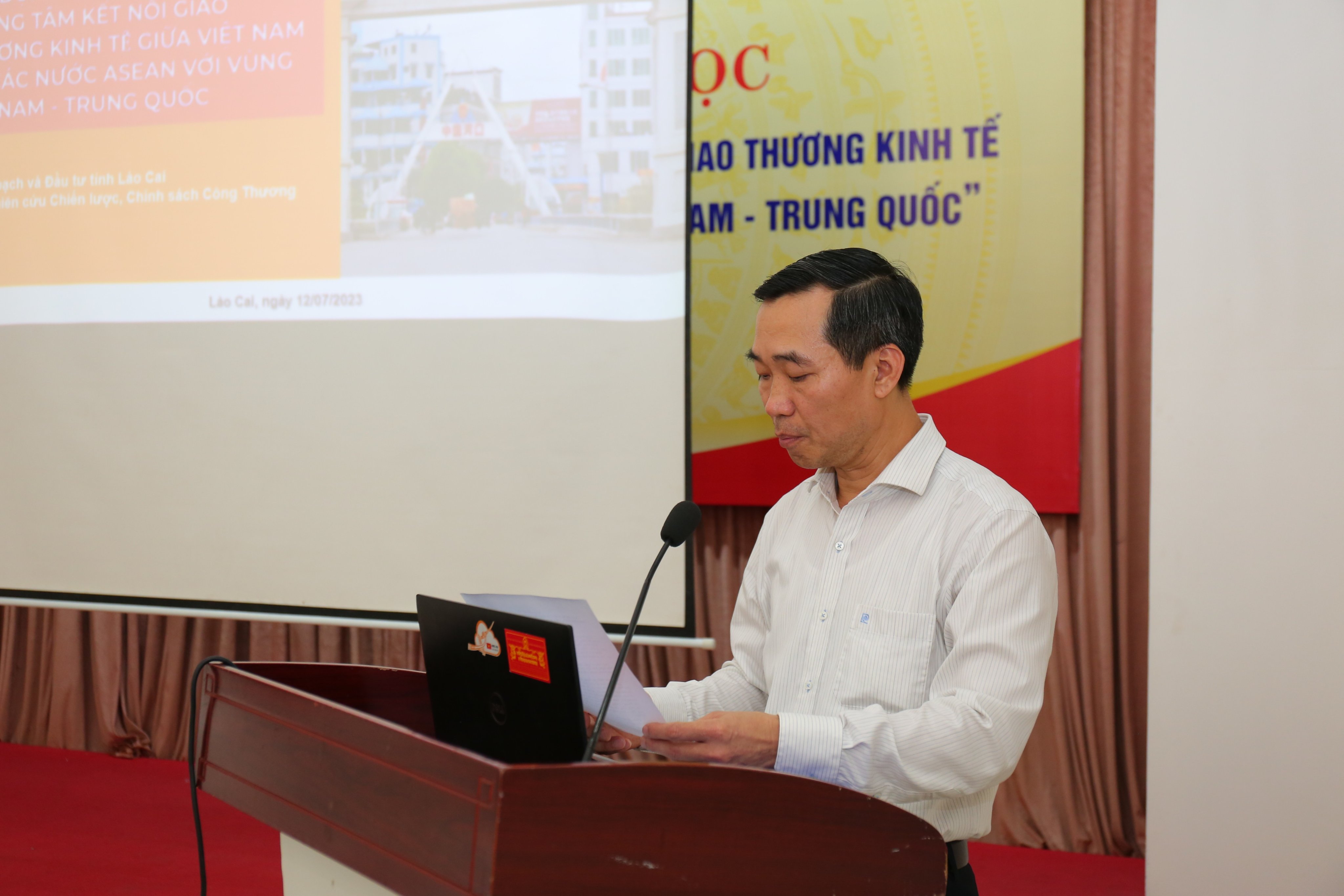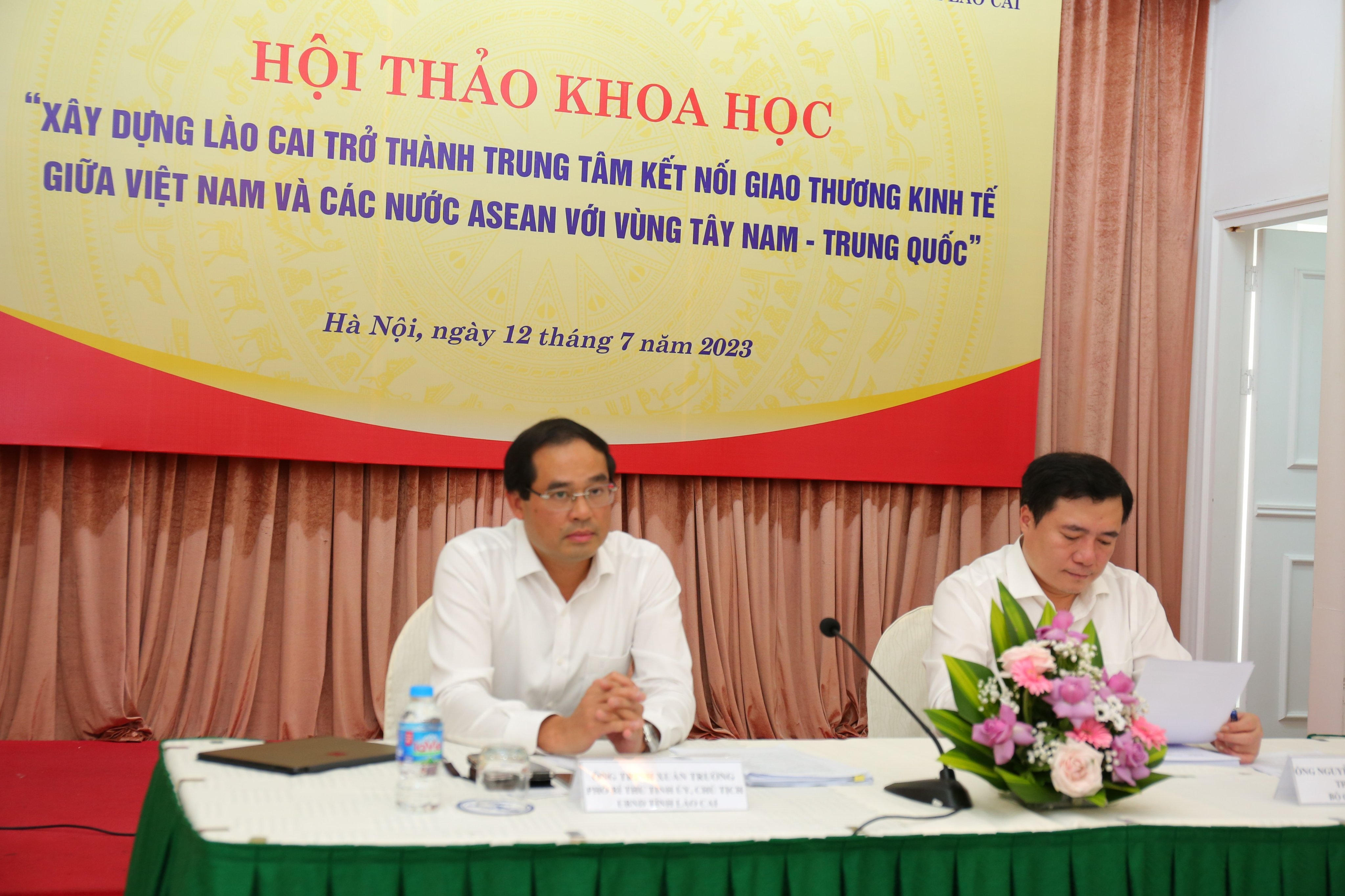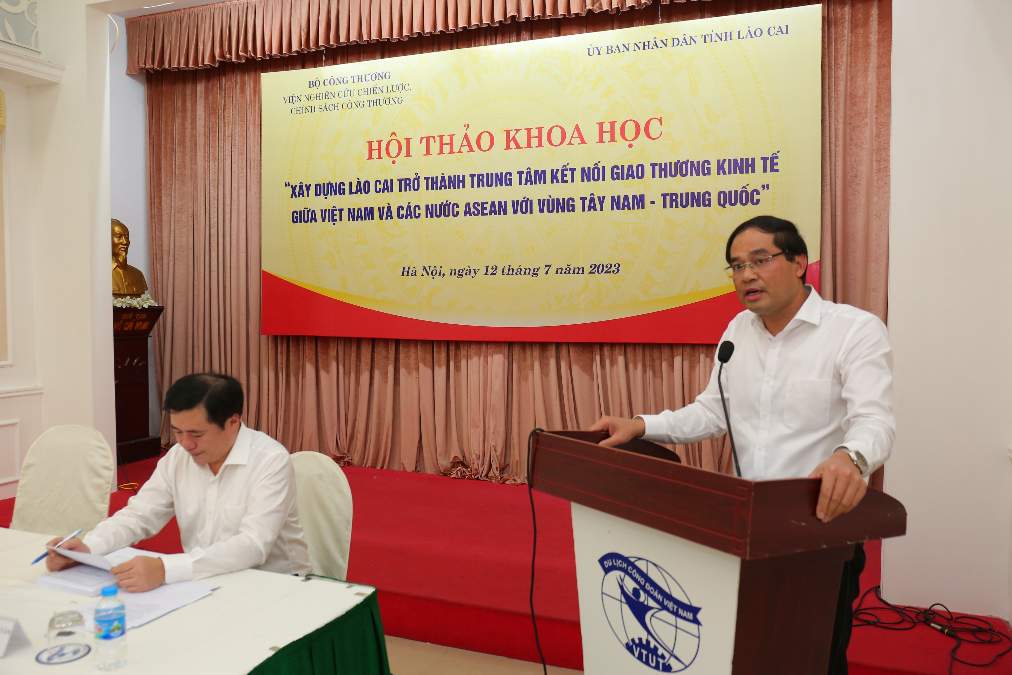 Chiều ngày 12 tháng 7 năm 2023, Bộ Công Thương và UBND tỉnh Lào Cai đồng chủ trì Hội thảo khoa học “Xây dựng Lào Cai trở thành trung tâm kết nối giao thương kinh tế giữa Việt Nam và các nước ASEAN với vùng Tây Nam - Trung Quốc”, nhằm tiếp thu những ý kiến đóng góp của các nhà khoa học, các nhà quản lý để xây dựng, hoàn thiện Đề án.