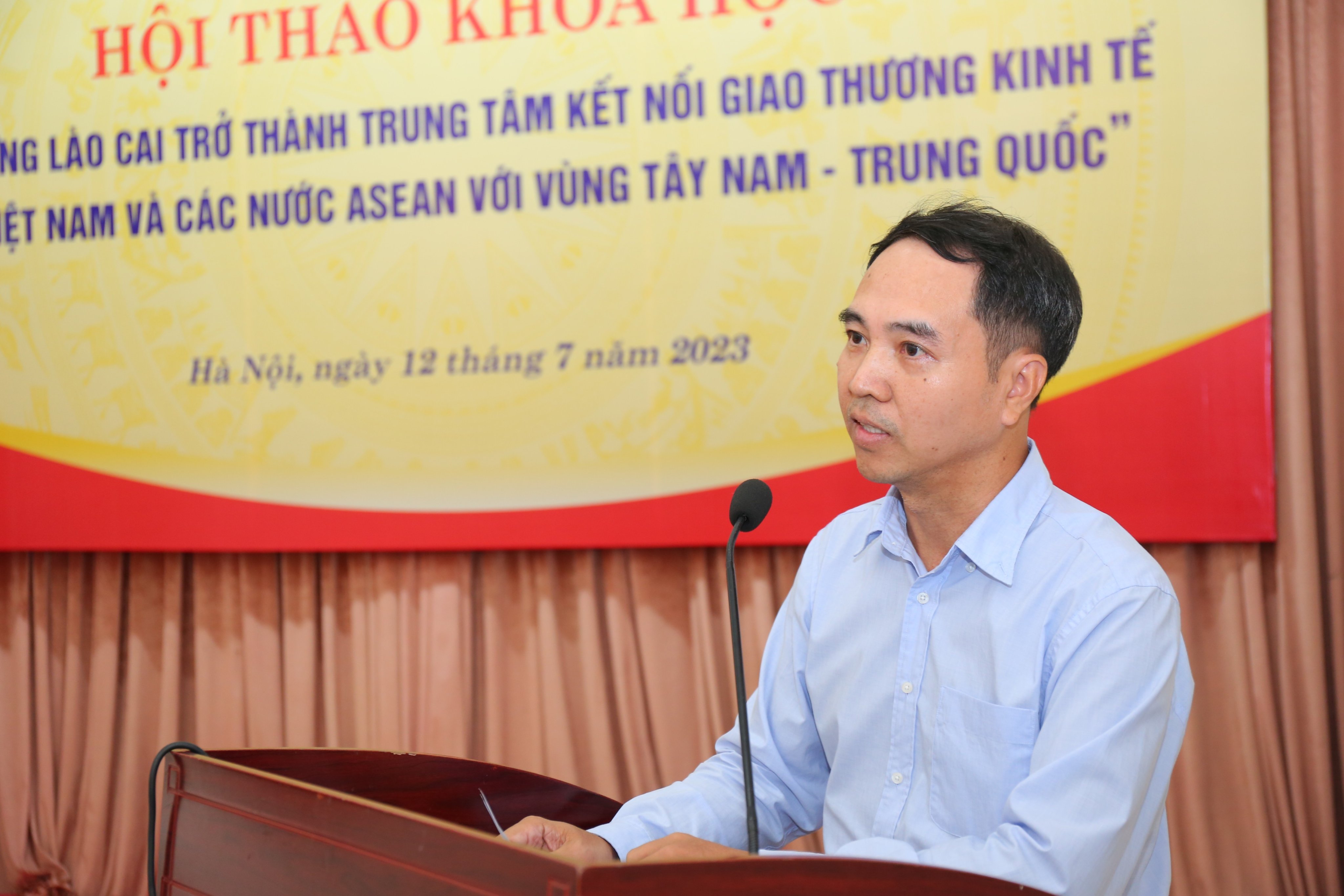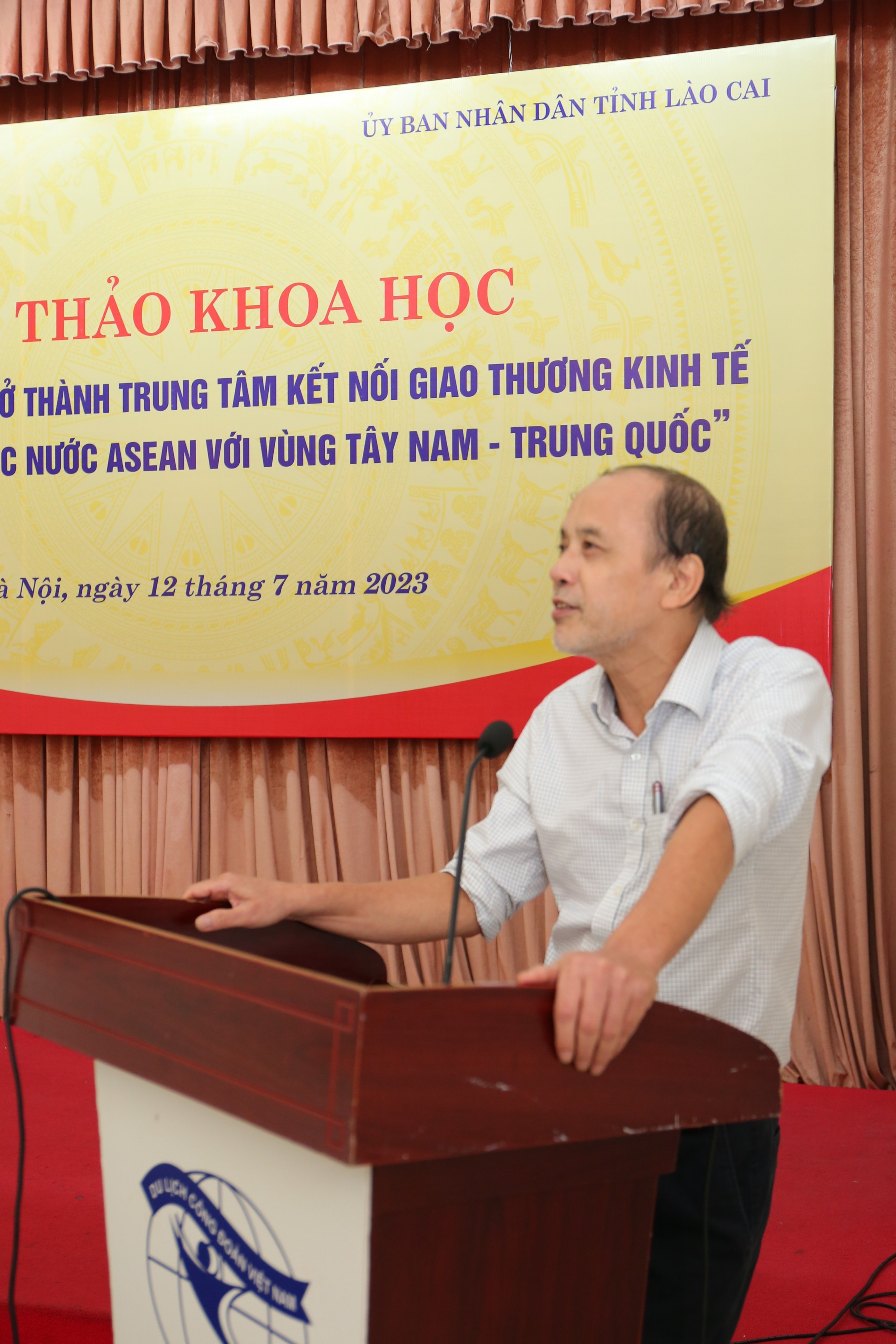 Trình bày tóm tắt nội dung Đề án tại Hội thảo, ông Nguyễn Khắc Quyền - Phó Viện trưởng Viện Nghiên cứu Chiến lược, Chính sách Công Thương cho biết đối tượng của Đề án là những vấn đề liên quan đến việc xây dựng Lào Cai thành trung tâm kết nối giao thương kinh tế giữa Việt Nam và các nước ASEAN với vùng Tây Nam, Trung Quốc (các điều kiện, lợi ích, định hướng, giải pháp và đề xuất, kiến nghị). Về phạm vi thực hiện, Đề án tiếp cận xây dựng, phát triển tỉnh Lào Cai trở thành trung tâm kết nối giao thương kinh tế của Việt Nam và ASEAN với vùng Tây Nam, Trung Quốc; đặt trong mối quan hệ là tỉnh có biên giới tiếp giáp với tỉnh Vân Nam, Trung Quốc. Giai đoạn đánh giá 2012 - 2022; thời kỳ định hướng đến năm 2030, tầm nhìn đến năm 2050.