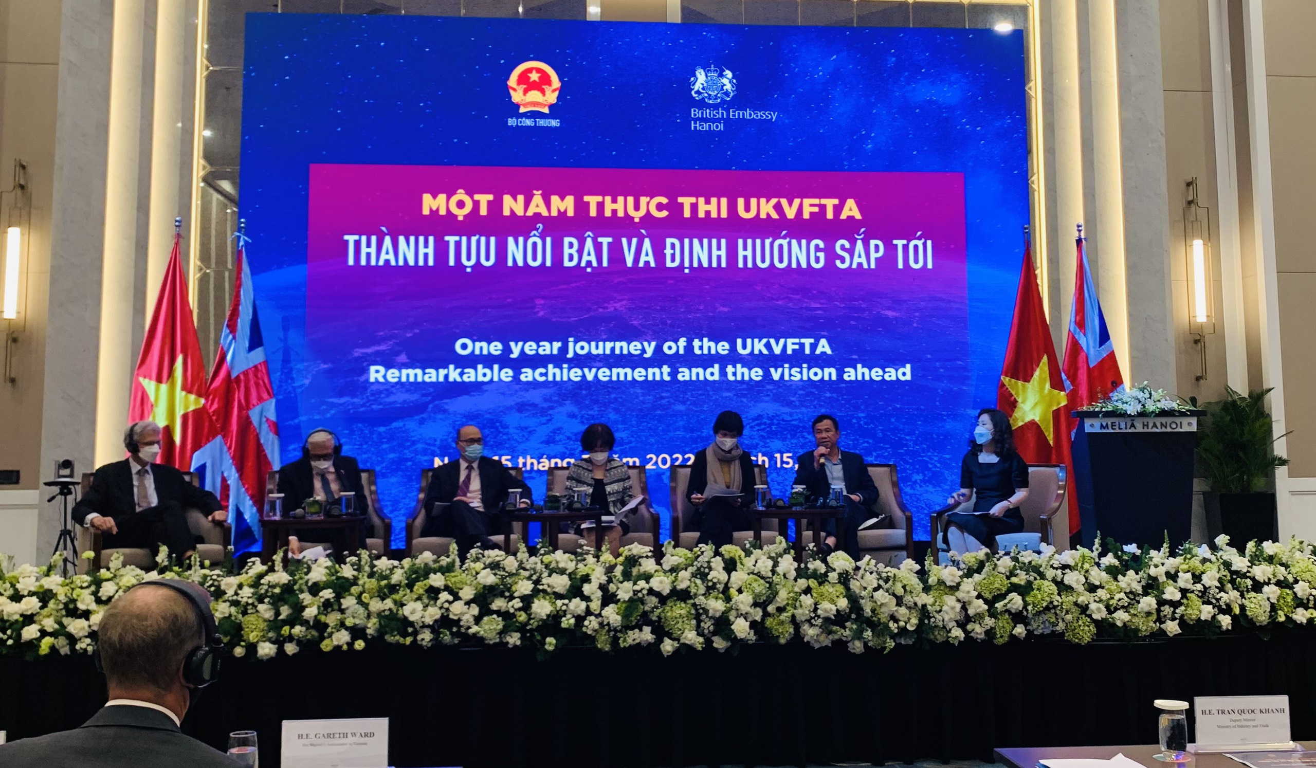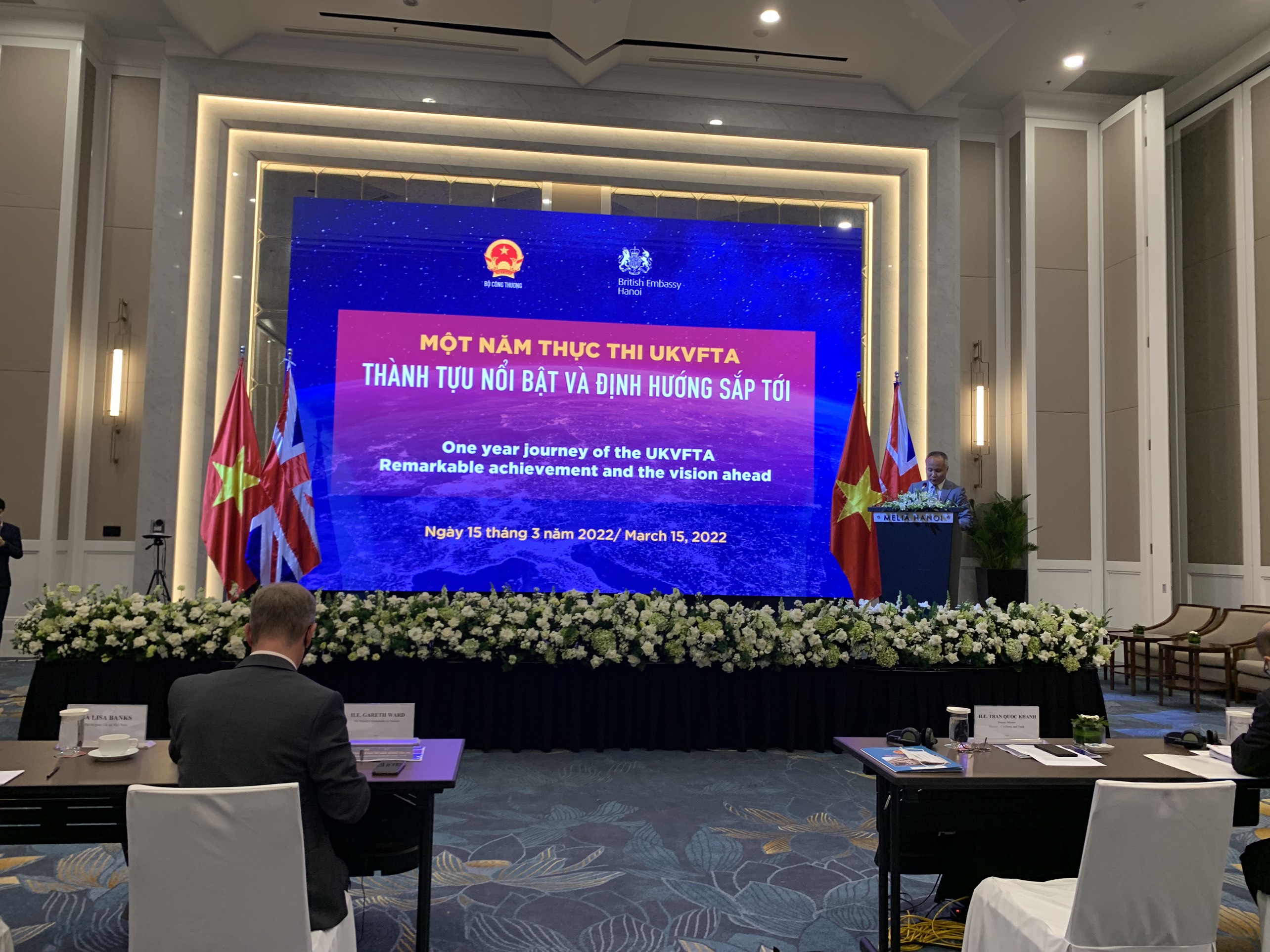 Hiệp định thương mại tự do giữa Việt Nam và Vương quốc Anh (UKVFTA) đã được ký kết vào tháng 29/12/2020 tại London, được áp dụng tạm thời từ ngày 1/1/2021 và chính thức có hiệu lực từ ngày 1/5/2021. Hiệp định UKVFTA được đàm phán dựa trên nguyên tắc kế thừa các cam kết đã có trong EVFTA, với những điều chỉnh cần thiết để đảm bảo phù hợp với khuôn khổ thương mại song phương giữa Việt Nam và Anh, đồng thời đảm bảo cân bằng lợi ích của cả đôi bên. Sau hơn 1 năm thực thi Hiệp định chiều ngày 15/03/2022, Bộ Công Thương đã phối hợp với Đại sứ quán Vương quốc Anh tại Việt Nam tổ chức Hội nghị "Năm đầu tiên thực thi UKVFTA: Thành tựu nổi bật và Định hướng sắp tới" tại Hà Nội.
