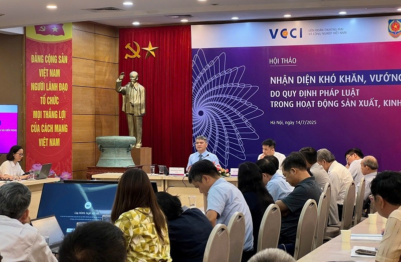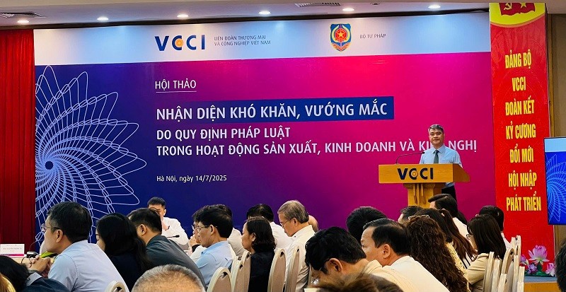 Nhằm nhận diện các khó khăn, vướng mắc từ các quy định pháp luật tác động đến hoạt động sản xuất, kinh doanh, đồng thời cung cấp thông tin thực tiễn từ các doanh nghiệp và chuyên gia, sáng ngày 14/07/2025 tại Hà Nội, Liên đoàn Thương mại và Công nghiệp Việt Nam (VCCI) đã phối hợp với Bộ Tư pháp - cơ quan thường trực của Ban Chỉ đạo Trung ương về hoàn thiện thể chế, pháp luật tổ chức Hội thảo “Nhận diện khó khăn, vướng mắc do quy định pháp luật trong hoạt động sản xuất, kinh doanh và kiến nghị”.