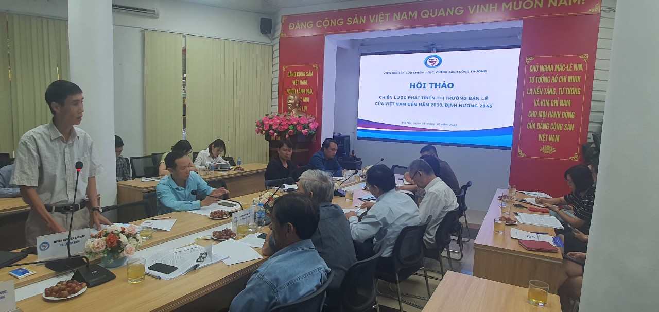 Sáng ngày 31 tháng 10 năm 2023, tại Hội trường tầng 1, Viện Nghiên cứu chiến lược, chính sách Công Thương, số 17 Yết Kiêu, Nguyễn Du, Hai Bà Trưng, Hà Nội đã diễn ra Hội thảo góp ý cho nhiệm vụ “Chiến lược phát triển thị trường bán lẻ của Việt Nam đến năm 2030, định hướng năm 2045” do TS. Vương Quang Lượng làm chủ nhiệm.