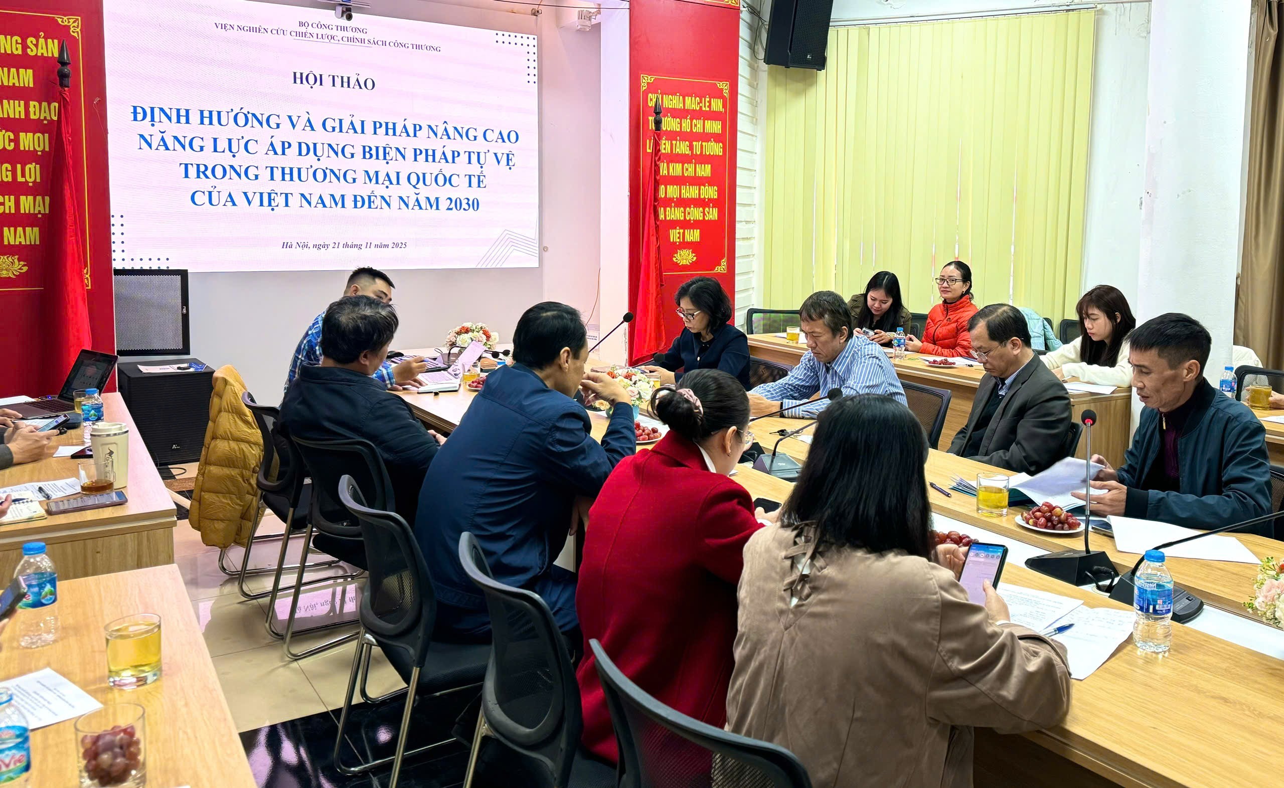 Sáng ngày 21/11/2025, tại hội trường tầng 1, trụ sở của Viện số 17 Yết Kiêu, Phường Nguyễn Du, Quận Hai Bà Trưng, Hà Nội đã diễn ra Hội thảo với chủ đề: “Định hướng và giải pháp nâng cao năng lực áp dụng biện pháp tự vệ trong thương mại quốc tế của Việt Nam đến năm 2030” do ThS. Lê Anh Tú - Phòng Thông tin và Truyền thông - Viện Nghiên cứu Chiến lược, Chính sách Công Thương làm chủ nhiệm.