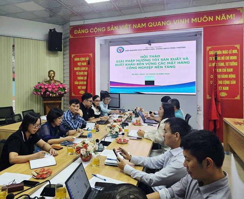 Sáng ngày 16 tháng 10 năm 2025, tại hội trường tầng 1, Viện Nghiên cứu Chiến lược, Chính sách Công Thương (số 17 Yết Kiêu, phường Hai Bà Trưng, thành phố Hà Nội) đã diễn ra Hội thảo “Giải pháp hướng tới sản xuất và xuất khẩu bền vững các mặt hàng công nghiệp nền tảng”. Đây là hội thảo thứ ba thuộc nhiệm vụ “Chuỗi hội thảo đẩy mạnh xuất khẩu các mặt hàng công nghiệp nền tảng của Việt Nam”, do Ths. Hoàng Thị Vân Anh - Phòng Dự báo thị trường - làm chủ nhiệm.