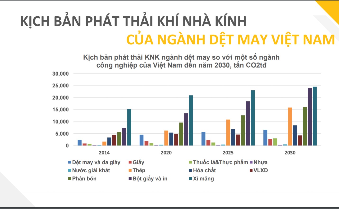 Bà Nguyễn Thanh Ngân - Phó trưởng ban, Ban đầu tư phát triển, Tập đoàn Dệt May Việt Nam trình bày bài tham luận “Một số giải pháp nhằm giảm phát thải trong ngành Dệt, May ”. Theo bà Ngân, mục tiêu ngành dệt may sẽ trở thành ngành chủ lực về xuất khẩu của nền kinh tế, sản phẩm có chất lượng có năng lực cạnh tranh cao, giữ vững vị trí trên trường quốc tế, đến năm 2035 phát triển hiệu quả bền vững theo mô hình tuần hoàn nền kinh tế. Để làm được điều đó thì cần một số giải pháp như phát triển thị trường, thu hút đầu tư, phát triển nguồn nhân lực, xanh hoá ngành, sử dụng năng lượng tối ưu, giảm sử dụng nước, giảm phát thải khí nhà kính, tăng cường tái chế, tái sử dụng.