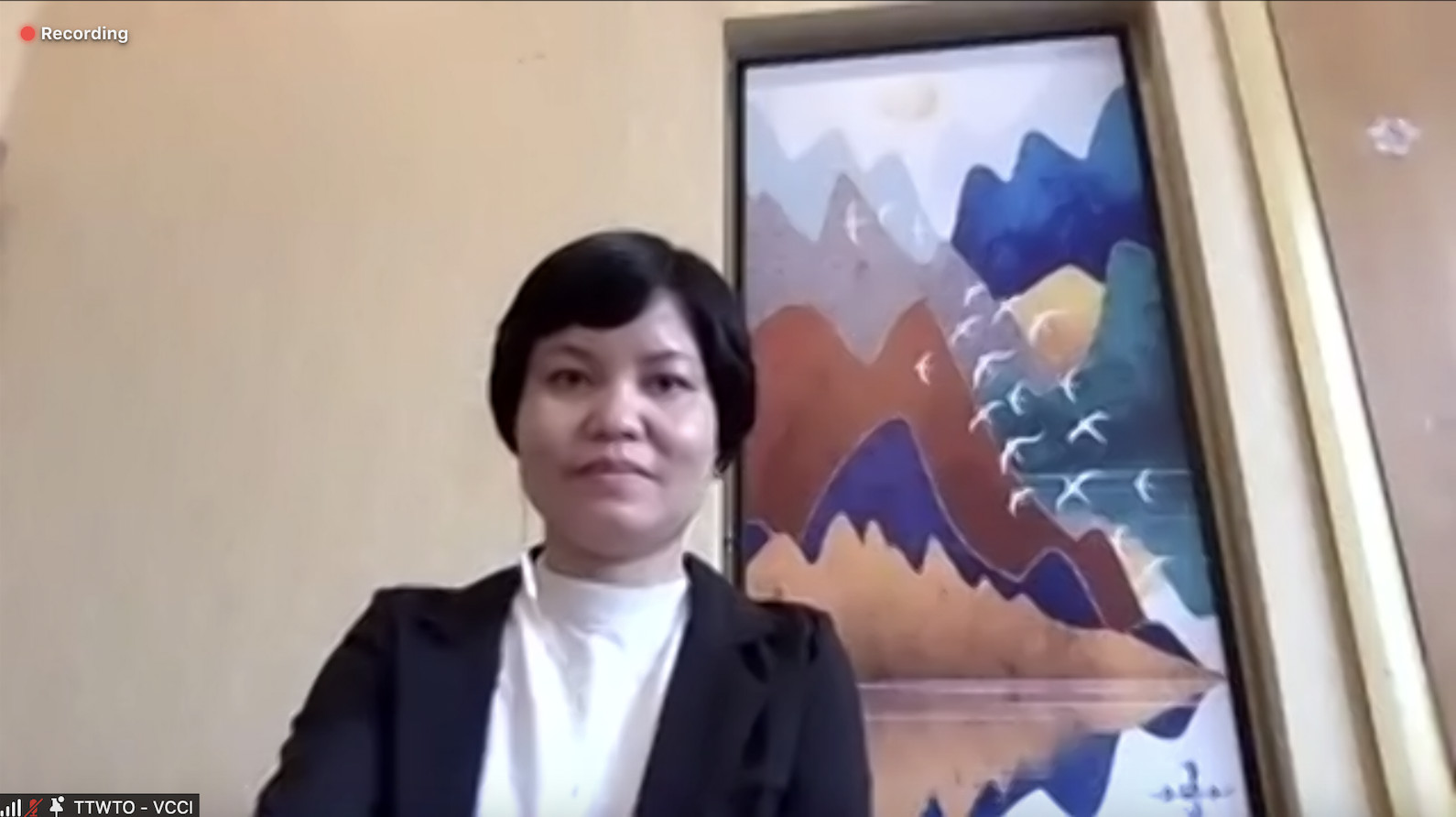 TS. Nguyễn Thị Hoàng Hạnh, Phó Giám đốc Trung tâm Nghiên cứu Đào tạo và Hỗ trợ tư vấn, Cục Sở hữu trí tuệ đã nhận xét chủ đề và mục tiêu báo cáo của nhóm trình bày. Đây là chủ đề hay ý nghĩa phù hợp với xu hướng. Chuyển đổi số giúp cho mạng lưới kinh doanh, vận hành hiệu quả hơn trong bối cảnh Covid. Sở hữu trí tuệ giúp doanh nghiệp duy trì và phát triển bền vững. Sở hữu trí tuệ hai mặt không phải cam kết đầy đủ là có lợi, mà là sự khéo léo của nhà đàm phán để có lợi cho các doanh nghiệp Việt Nam. Bài báo cáo đánh giá khá logic, có cơ sở, báo cáo tóm tắt thành các chương. Tuy nhiên so với mục tiêu thì báo cáo chỉ tập trung vào vấn đề sở hữu trí tuệ, các vấn đề kinh tế, cải cách kinh tế chưa sâu. Báo cáo chỉ dừng lại cam kết đưa ra, chưa có đánh giá sâu hơn đưa ra các tác động cụ thể. Nhìn chung kết quả của báo cáo được đánh giá cao.