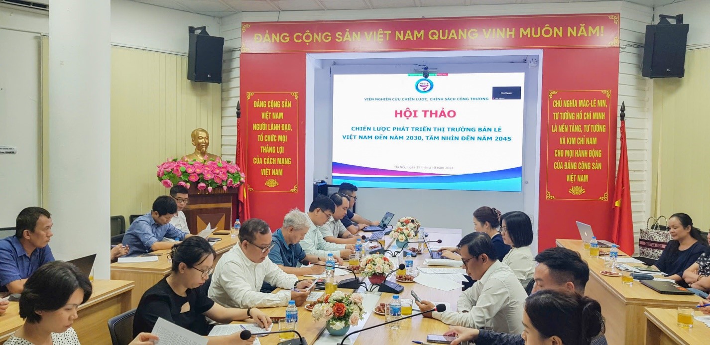 Ngày 15/10/2024, tại Hội trường tầng 1, số 17 Yết Kiêu, Hà Nội, Viện trưởng Viện Nghiên cứu chiến lược, chính sách Công Thương Nguyễn Văn Hội đã chủ trì Hội thảo xin ý kiến đối với Dự thảo “Chiến lược phát triển thị trường bán lẻ Việt Nam đến năm 2030, tầm nhìn đến năm 2050”.