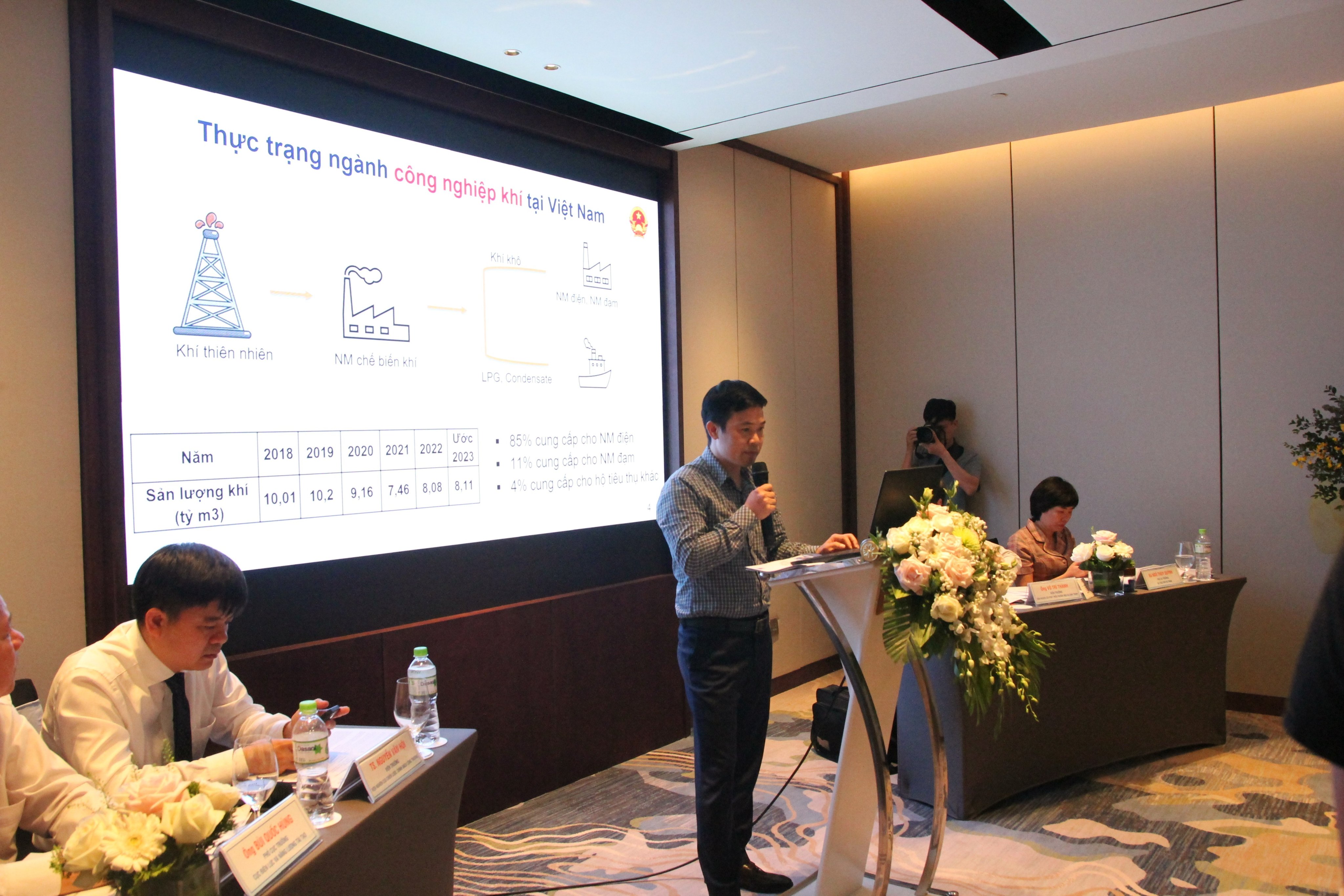 Tiếp sau TS. Vũ Quang Hùng là bài tham luận của đại diện Vụ dầu khí và Than, với chủ đề “ Thực trạng và tiềm năng phát triển ngành công nghiệp khí tại Việt Nam”. Định hướng phát triển ngành Dầu khí tại Việt Nam đã được Chính phủ hoạch định rõ ràng, quy hoạch phát triển theo từng thời kỳ. Với nhu cầu sử dụng khí ngày càng cao, Chính phủ luôn quan tâm đầu tư và phát triển cho ngành, tạo điều kiện thuận lợi cho các doanh nghiệp tham gia vào thị trường, cơ chế thị trường cạnh tranh đang thu hút nhiều nhà đầu tư trong và ngoài nước. Đây được coi là những điều kiện thuận lợi lớn giúp cho ngành Dầu khí nước ta phát triển. Tuy nhiên, bên cạnh thuận lợi, ngành Dầu khí cũng gặp phải nhiều thách thức như: Một số cơ chế, chính sách chưa được hoàn thiện, công nghệ phức tạp và có bản quyền, vốn đầu tư trong lĩnh vực dầu khí rất lớn. Bên cạnh đó, với sự biến động của thị trường dầu khí thế giới do chịu ảnh hưởng rất lớn bởi yếu tố chính trị và xu hướng chuyển dịch năng lượng toàn cầu. Vì vậy, định hướng chính sách cho phát triển ngành công nghiệp khí Việt Nam cần: Hoàn thiện Chiến lược năng lượng quốc gia, Quy hoạch năng lượng quốc gia trình Thủ tướng Chính phủ xem xét phê duyệt; Triển khai nhiệm vụ được giao đối với thị trường khí tại Quyết định số 2233/QĐ-TTg ngày 28/12/2020 của Thủ tướng Chính phủ phê duyệt Đề án phát triển thị trường năng lượng cạnh tranh đến năm 2030, tầm nhìn đến năm 2045; Hoàn thiện hệ thống Tiêu chuẩn, Quy chuẩn kỹ thuật quốc gia trong lĩnh vực LNG; Xây dựng, hoàn thiện các khung pháp lý về cơ chế, chính sách đối với thị trường khí, đặc biết là giá khí cho sản xuất điện...