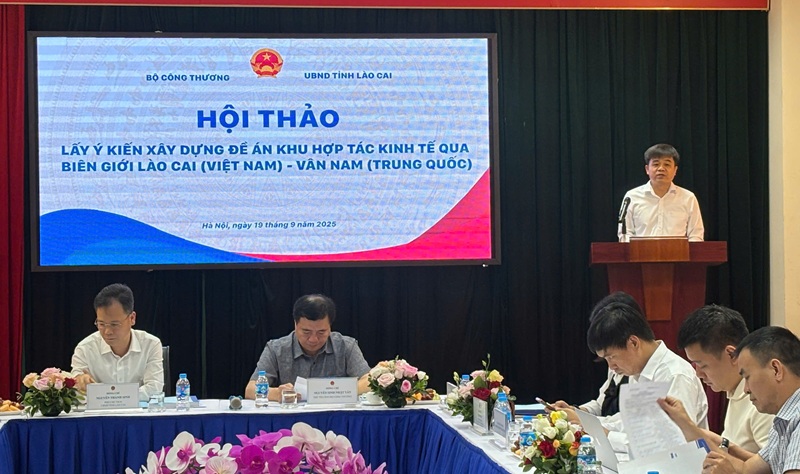 Chiều ngày 19 tháng 09 năm 2025, Bộ Công Thương đã tổ chức Hội thảo lấy ý kiến xây dựng Đề án Khu hợp tác kinh tế qua Biên giới Lào Cai (Việt Nam) - Vân Nam (Trung Quốc) tại trụ sở Viện Nghiên cứu Chiến lược, Chính sách Công Thương - 193 Vĩnh Hưng, Hà Nội.