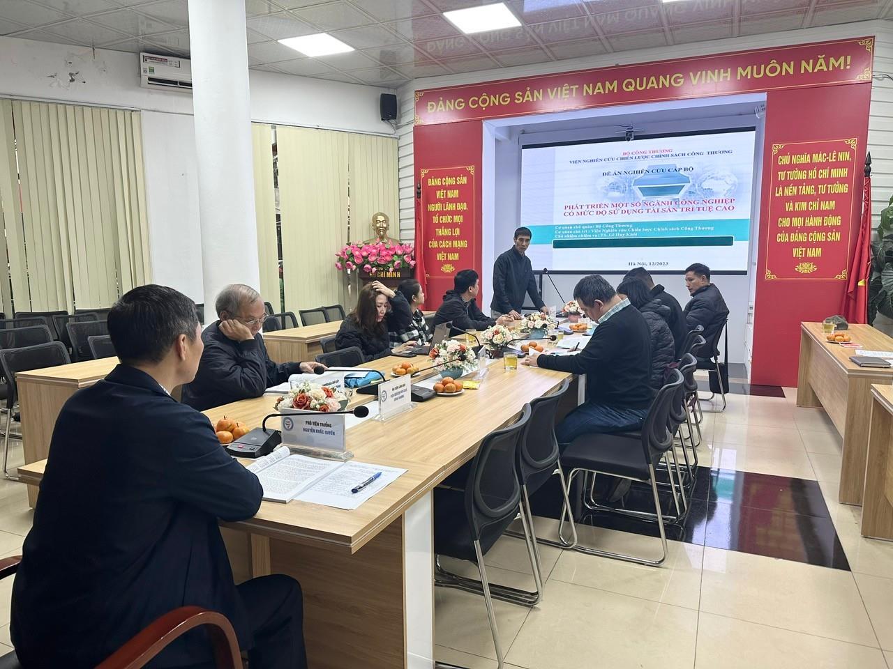 Sáng ngày 18 tháng 12 năm 2023, tại Hội trường tầng 1, Viện Nghiên cứu chiến lược, chính sách Công Thương, số 17 Yết Kiêu, Nguyễn Du, Hai Bà Trưng, Hà Nội đã diễn ra buổi Hội thảo nhiệm vụ đề án: “Phát triển một số ngành công nghiệp có mức độ sử dụng tài sản trí tuệ cao” do TS. Lê Huy Khôi, Trưởng phòng Quản lý khoa học và đào tạo, Viện Nghiên cứu chiến lược, chính sách Công Thương làm chủ nhiệm.