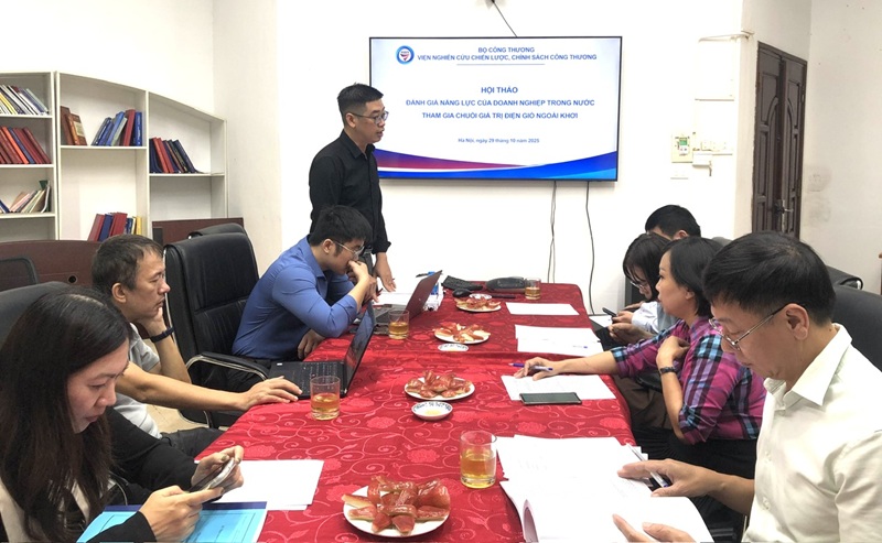 Sáng ngày 29 tháng 10 năm 2025, tại Hội trường tầng 2 số 17 Yết Kiêu, phường Hai Bà Trưng, Hà Nội, Viện Nghiên cứu Chiến lược, Chính sách Công Thương đã diễn ra Hội thảo “Đánh giá năng lực của doanh nghiệp trong nước tham gia chuỗi giá trị điện gió ngoài khơi” do Ông Đỗ Tuấn Linh - Phó Trưởng phòng Dự báo thị trường làm chủ nhiệm.