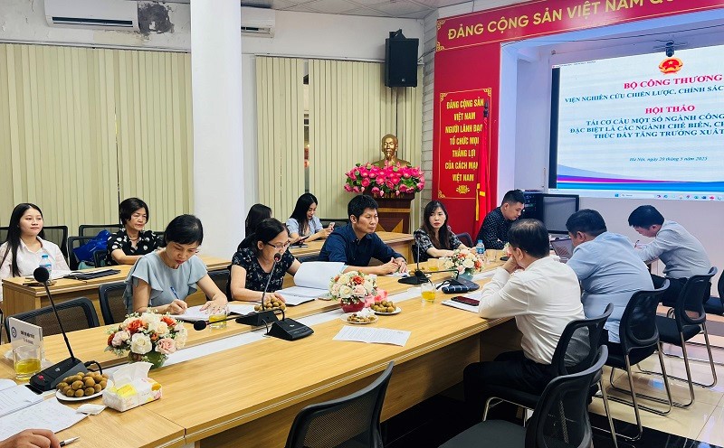 Chiều ngày 20/05/2025, tại hội trường tầng 1, trụ sở của Viện số 17 Yết Kiêu, Phường Nguyễn Du, Quận Hai Bà Trưng, Hà Nội đã diễn ra Hội thảo khoa học góp ý dự thảo báo cáo nhiệm vụ “Tái cơ cấu một số ngành công nghiệp, đặc biệt là các ngành chế biến, chế tạo nhằm thúc đẩy tăng trưởng xuất khẩu” do ThS. Thân Thanh Bình, Phòng Kế hoạch và Khoa học - Viện Nghiên cứu Chiến lược, Chính sách Công Thương làm chủ nhiệm. Hội thảo nhằm mục đích nhận được thêm các ý kiến đóng góp từ phía các nhà quản lý, các chuyên gia, nhà khoa học để nhóm nghiên cứu tiếp tục hoàn thiện nhiệm vụ.