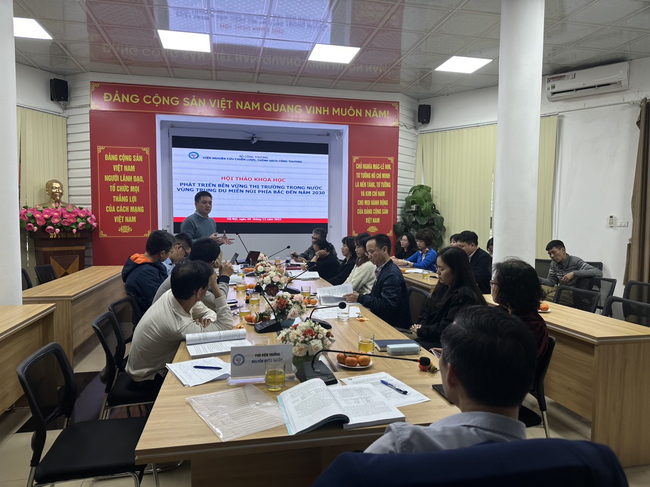 Đề án: “Phát triển bền vững thị trường trong nước vùng Trung du miền núi phía Bắc đến năm 2030” đã được tổ chức Hội thảo lần 1 vào ngày 05 tháng 09 năm 2023, với phạm vi nghiên cứu là phát triển bền vững thị trường hàng hóa tại 14 tỉnh vùng trung du miền núi phía Bắc là Hà Giang, Cao Bằng, Lào Cai, Bắc Kạn, Lạng Sơn, Tuyên Quang, Yên Bái, Thái Nguyên , Lai Châu, Phú Thọ, Bắc Giang, Lai Châu, Điện Biên, Sơn La, Hòa Bình. Tại Hội thảo lần 1, nhiều ý kiến góp ý cho nhiệm vụ được đưa ra và được ông Nguyễn Khắc Quyền - Phó Viện trưởng, chủ trì Hội thảo lần 1 kết luận đề nghị Ban soạn thảo đề án cần phải làm rõ hơn một số nội dung trong Đề án như xác định rõ khái niệm về phát triển thị trường, thị trường trong nước, thị trường khu vực vùng, sự kết nối bền vững phát triển vùng với thị trường trong nước; phân tích cung - cầu, sự liên kết giữa cung và cầu trong phát triển bền vững thị trường, các chính sách của Trung ương và địa phương liên quan đến sự phát triển bền vững của thị trường Vùng trung du miền núi phía Bắc…