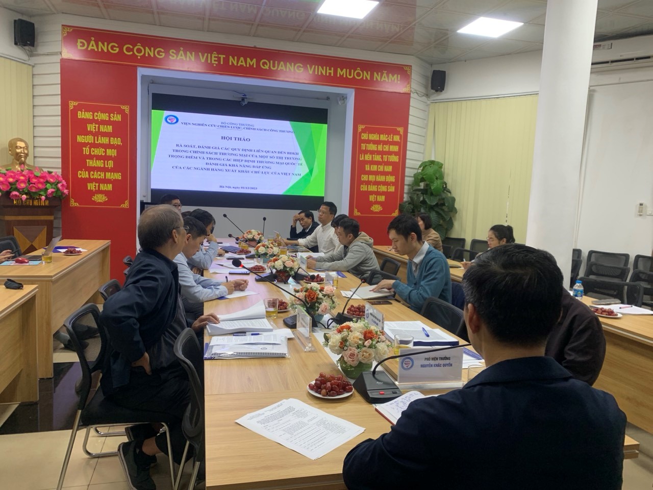 Sáng ngày 1 tháng 12 năm 2023, tại Viện Nghiên cứu chiến lược, chính sách Công Thương tổ chức chương trình hội thảo“Rà soát, đánh giá các quy định liên quan đến biến đổi khí hậu trong chính sách thương mại của một số thị trường trọng điểm và trong các hiệp định thương mại quốc tế mà Việt Nam tham gia. Đề xuất giải pháp ứng phó và xây dựng sổ tay hướng dẫn doanh nghiệp đáp ứng đối với một số ngành hàng xuất, nhập khẩu chủ lực của Việt Nam”.