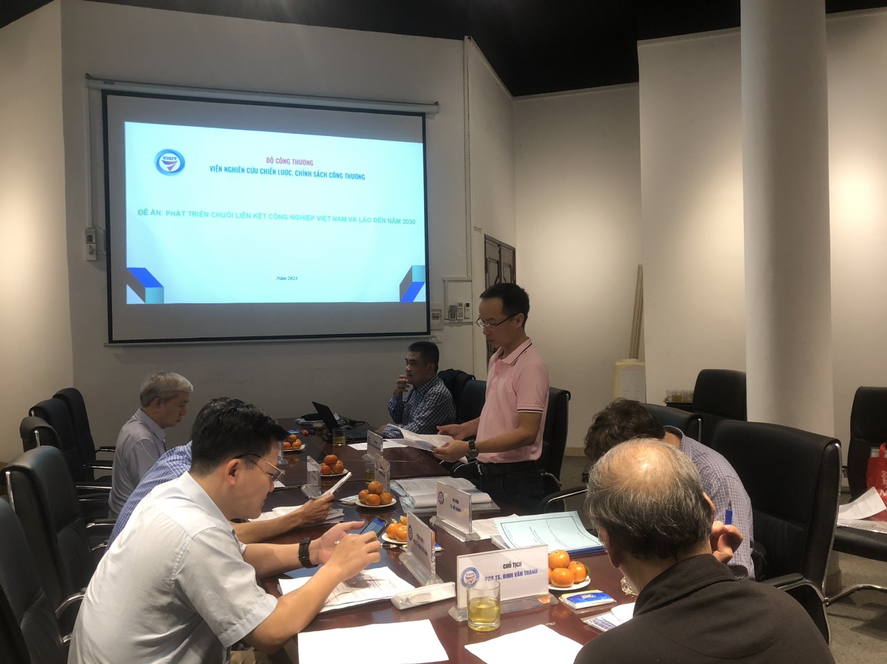 Sáng ngày 15 tháng 12 năm 2023 tại Hội trường tầng 2, trụ sở của Viện Nghiên cứu chiến lược, chính sách Công Thương, số 17 Yết Kiêu, Phường Nguyễn Du, Quận Hai Bà Trưng, Hà Nội đã tổ chức nghiệm thu cấp Viện đề án “Phát triển chuỗi liên kết công nghiệp Việt Nam - Lào đến năm 2030” do KS. Tạ Đức Tuân - Giám đốc Trung tâm tham vấn WTO và FTAs làm chủ nhiệm.