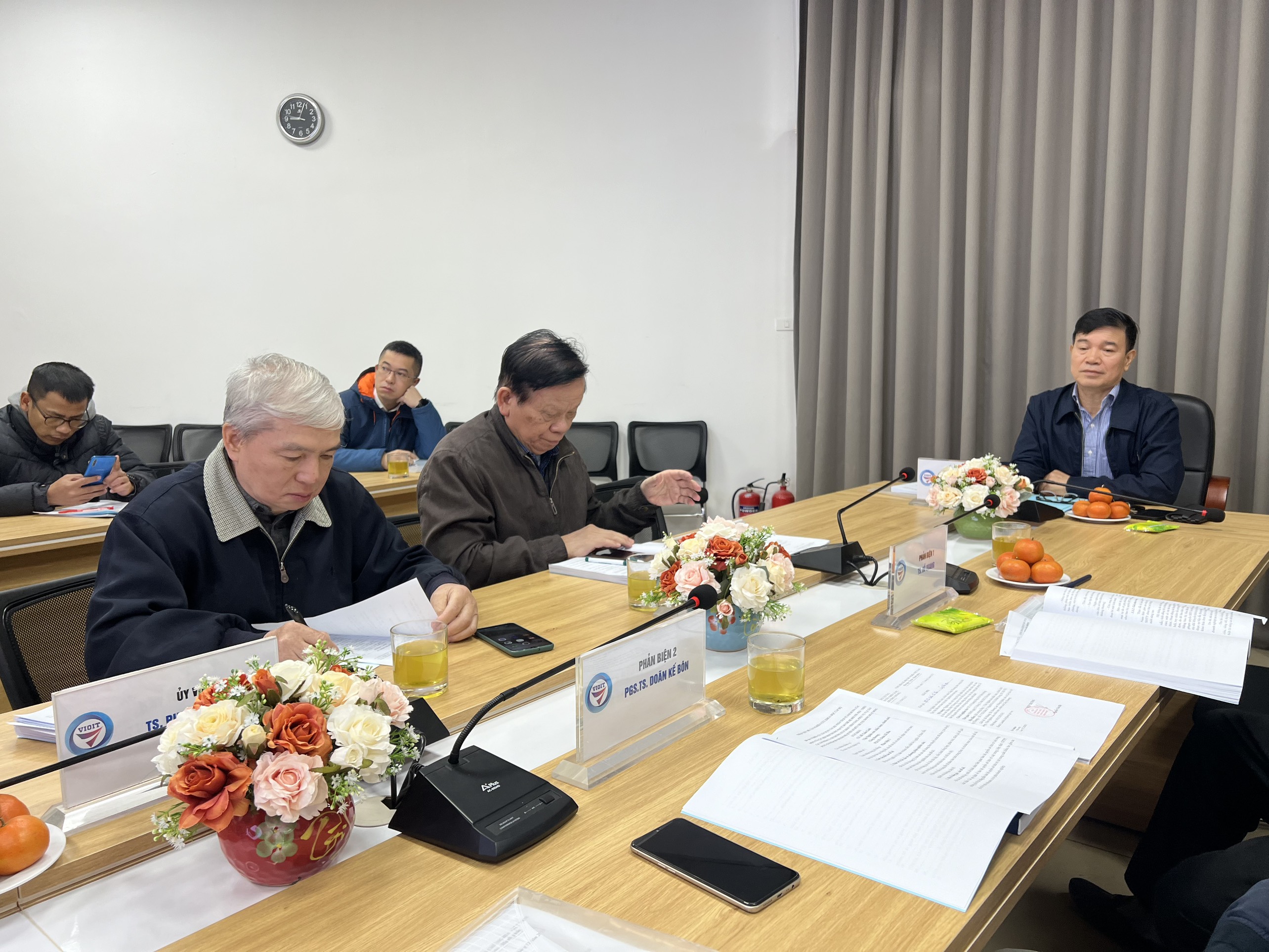 Hội đồng nghiệm thu được thành lập theo quyết định số: 1060/QĐ-CLCT ban hành ngày 11/12/2023, do TS. Vũ Quang Hùng - Phó Viện trưởng - Chủ tịch hội đồng. Các thành viên tham gia hội đồng gồm: TS. Đỗ Quang - Tổng biên tập Tạp chí Nghiên cứu công nghiệp và thương mại - Ủy viên phản biện 1; PGS.TS. Doãn Kế Bôn - Giảng viên Trường Đại học Thương mại - Ủy viên phản biện 2; TS. Nguyễn Văn Lịch - Chuyên gia cao cấp Viện Nghiên cứu chiến lược, chính sách Công Thương - Ủy viên; TS. Đỗ Thị Hương - Giảng viên Trường Đại học Kinh tế quốc dân - Ủy viên; TS. Phạm Hữu Thìn - Chuyên gia của Viện Nghiên cứu chiến lược, chính sách Công Thương - Ủy viên; TS. Đặng Công Hiến - Phó trưởng phòng Quản lý khoa học và đào tạo - Ủy viên thư ký. Ngoài ra, tham dự còn có đại diện các phòng và các nhà khoa học trong viện, thành viên nhóm nghiên cứu nhiệm vụ.