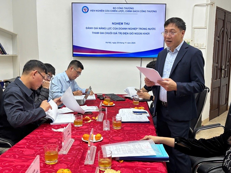 Sáng ngày 25 tháng 11 năm 2025, tại Hội trường tầng 2 số 17 Yết Kiêu - Hà Nội, Viện Nghiên cứu Chiến lược, Chính sách Công Thương đã diễn ra nghiệm thu nhiệm vụ “Đánh giá năng lực của doanh nghiệp trong nước tham gia chuỗi điện gió ngoài khơi” do Ông Đỗ Tuấn Linh, Phó trưởng Phòng Dự báo thị trường làm chủ nhiệm.