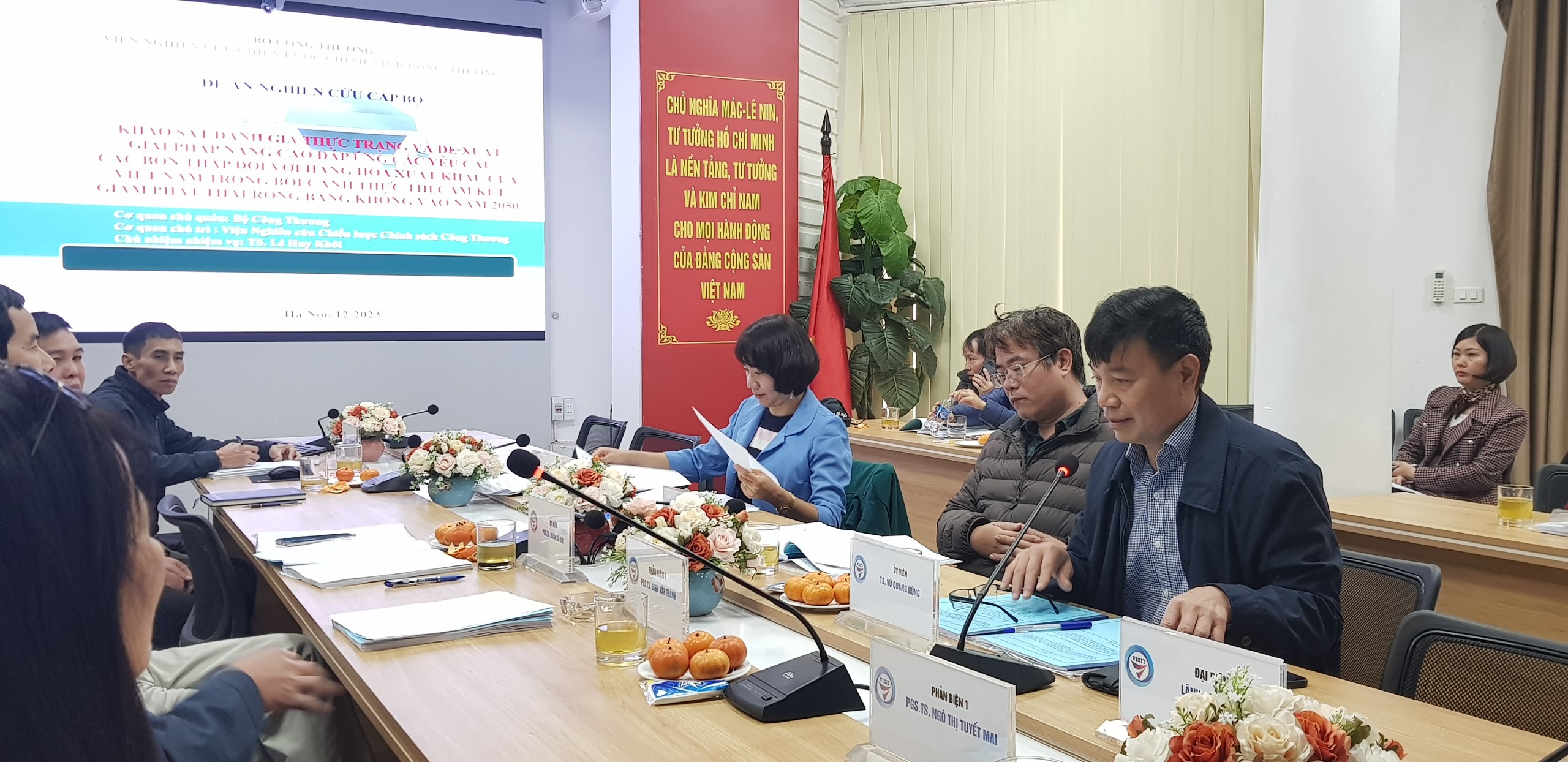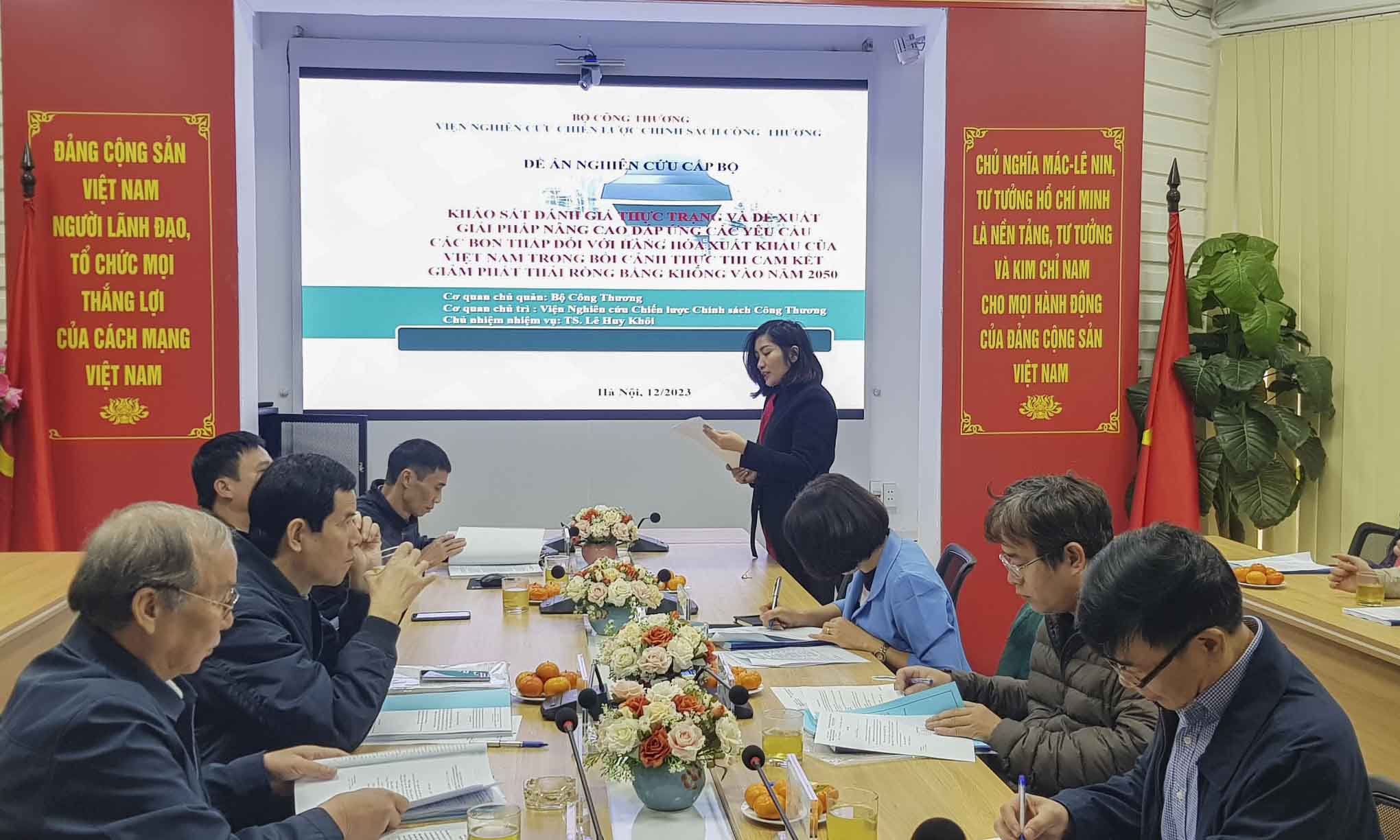 Sáng ngày 27 tháng 12 năm 2023, tại Hội trường tầng 1, Viện Nghiên cứu chiến lược, chính sách Công Thương, số 17 Yết Kiêu, Nguyễn Du, Hai Bà Trưng, Hà Nội đã diễn ra buổi nghiệm thu nhiệm vụ “Khảo sát đánh giá thực trạng và đề xuất giải pháp nâng cao đáp ứng các yêu cầu các bon thấp đối với hàng hóa xuất khẩu của Việt Nam trong bối cảnh thực thi cam kết giảm phát thải ròng bằng không vào năm 2050”. Nhiệm vụ do TS. Lê Huy Khôi - Trưởng phòng Quản lý khoa học và đào tạo - làm chủ nhiệm.