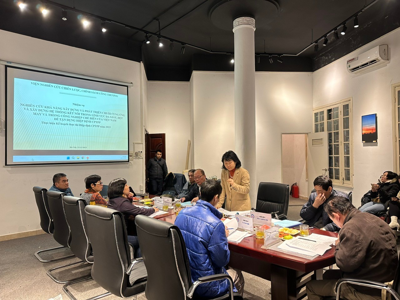 Sáng  ngày 22 tháng 12 năm 2023, tại Hội trường tầng 2, Viện Nghiên cứu chiến lược, chính sách Công Thương, số 17 Yết Kiêu, Nguyễn Du, Hai Bà Trưng, Hà Nội đã diễn ra buổi nghiệm thu nhiệm vụ: Nghiên cứu khả năng xây dựng và phát triển chuỗi cung ứng và xây dựng hệ thống kết nối trong lĩnh vực da giày, dệt may và trong công nghiệp chế biến củaViệt Nam để tận dụng hiệp định CPTPP  do CN. Bùi Thị Thanh Thủy làm chủ nhiệm.