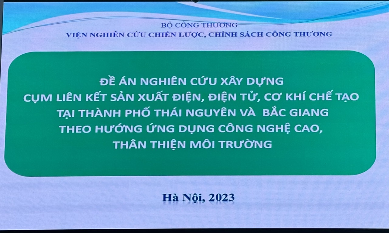 Nghiệm thu nhiệm vụ “Nghiên cứu xây dựng cụm liên kết sản xuất điện, điện tử, cơ khí chế tạo tại Thành phố Thái Nguyên và Bắc Giang theo hướng ứng dụng công nghệ cao, thân thiện môi trường”
