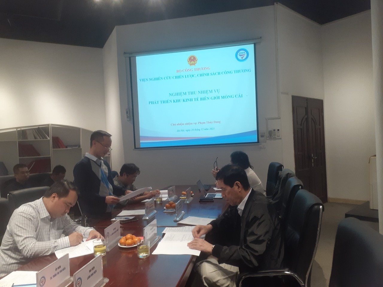 Chiều ngày 28 tháng 12 năm 2023, tại Hội trường tầng 2, trụ sở Viện Nghiên cứu chiến lược, chính sách Công Thương, số 17 Yết Kiêu, Phường Nguyễn Du, Quận Hai Bà Trưng, Hà Nội đã diễn ra buổi Họp nghiệm thu nhiệm vụ “Phát triển khu kinh tế biên giới Móng Cái” do CN. Phạm Thùy Dung - Văn phòng Viện Nghiên cứu chiến lược, chính sách Công Thương làm chủ nhiệm.