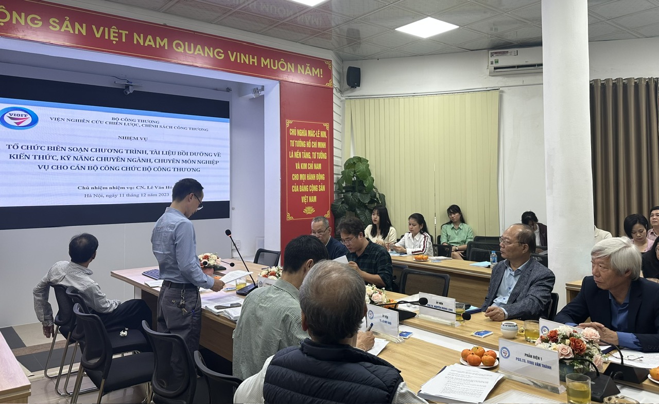 Chiều ngày 11 tháng 12 năm 2023, tại Hội trường tầng 1, Viện Nghiên cứu chiến lược, chính sách Công Thương, số 17 Yết Kiêu, Nguyễn Du, Hai Bà Trưng, Hà Nội đã diễn ra buổi nghiệm thu nhiệm vụ: “Tổ chức biên soạn chương trình, tài liệu bồi dưỡng về kiến thức, kỹ năng chuyên ngành chuyên môn nghiệp vụ cho cán bộ công chức Bộ Công Thương” do CN. Lê Văn Hóa làm chủ nhiệm.