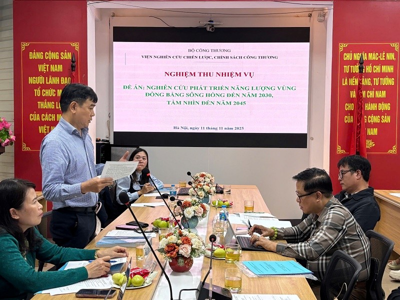 Chiều ngày 11 tháng 11 năm 2025, tại Hội trường tầng 1 số 17 Yết Kiêu - Hà Nội, Viện Nghiên cứu Chiến lược, Chính sách Công Thương đã diễn ra Nghiệm thu cấp Viện nhiệm vụ “Nghiên cứu phát triển năng lượng vùng Đồng bằng Sông Hồng đến năm 2030, tầm nhìn đến năm 2045” do TS. Trần Thị Thu Hiền, Phó trưởng Phòng Thông tin làm chủ nhiệm.
