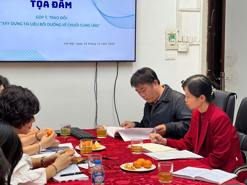 Chiều ngày 24 tháng 11 năm 2025, tại Hội trường tầng 2 trụ sở 17 Yết Kiêu - Hà Nội, Viện Nghiên cứu Chiến lược, Chính sách Công Thương đã tổ chức thành công Tọa đàm nhiệm vụ “Xây dựng tài liệu bồi dưỡng về chuỗi cung ứng” do CN. Giáp Minh Huyền, Phòng Nghiên cứu Thương mại làm chủ nhiệm.