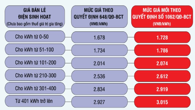 Hình 1: Biểu giá bán điện mới theo quyết định số 1062/QĐ-BCT ngày 04/05/2023