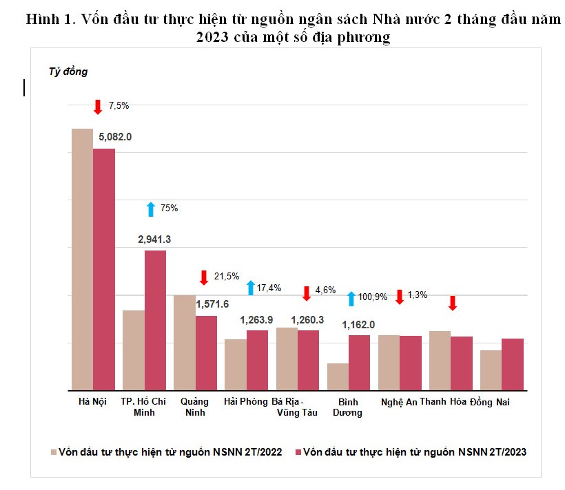 Vốn đầu thực hiện từ nguồn ngân sách Nhà nước 2 tháng đầu năm 2023 của một số tỉnh, thành phố trực thuộc Trung ương như sau: