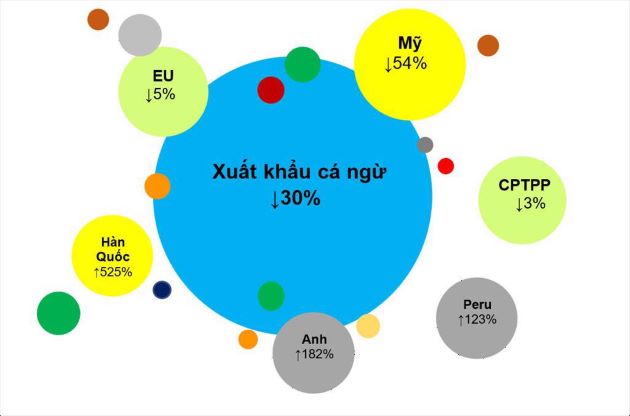 Bên cạnh đó, sự suy giảm nhu cầu NK tại các thị trường lớn đang khiến các doanh nghiệp XK cá ngừ chuyển dịch sang khai phá các thị trường nhỏ tiềm năng. XK sang các thị trường nhỏ đang có sự tăng trưởng đột phá ở mức 3 con số trở lên so với cùng kỳ, như Hàn Quốc tăng 525%, Anh tăng 182% hay Australia tăng 104%, Phần Lan tăng 654%, Algeria tăng 363%...