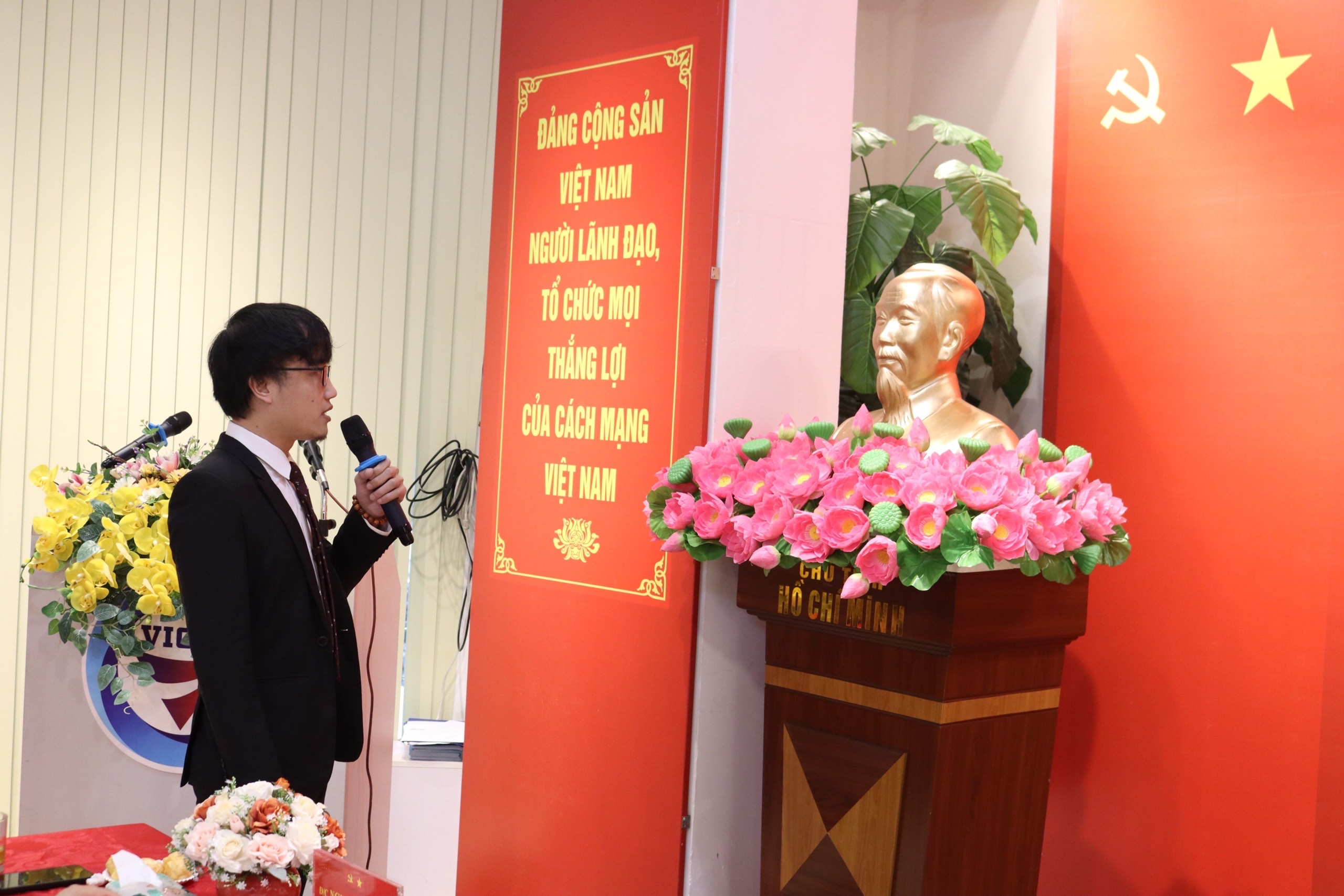 Đảng viên mới Phạm Quang Hiếu đọc lời tuyên thệ của đảng viên Đảng Cộng sản Việt Nam