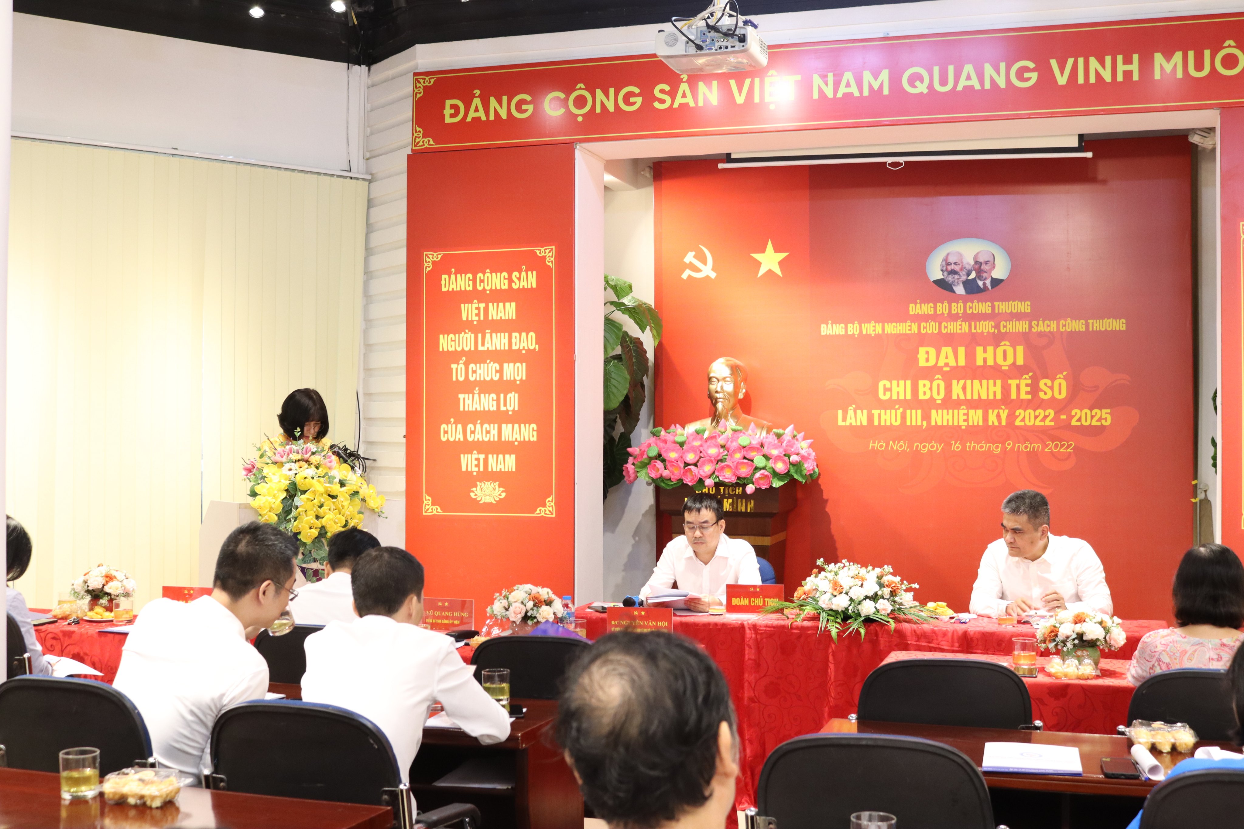 Đại hội đã được nghe báo cáo kiểm điểm của Chi ủy và Báo cáo tổng kết công tác nhiệm kỳ 2020-2022 và phương hướng nhiệm vụ của Chi bộ nhiệm kỳ 2022-2025. Đại hội được các Đảng viên của Chi bộ và đại diện cấp ủy các chi bộ Trực thuộc Đảng bộ Viện đến tham dự phát biểu ý kiến đóng góp cho bản báo cáo tổng kết và phương hướng nhiệm vụ của Chi bộ Kinh tế số trong nhiệm kỳ 2022-2025. Cũng tại Đại hội, Chi bộ Kinh tế số đã được nghe Lãnh đạo Đảng Ủy Viện phát biểu ý kiến và chỉ đạo cho Đại hội.