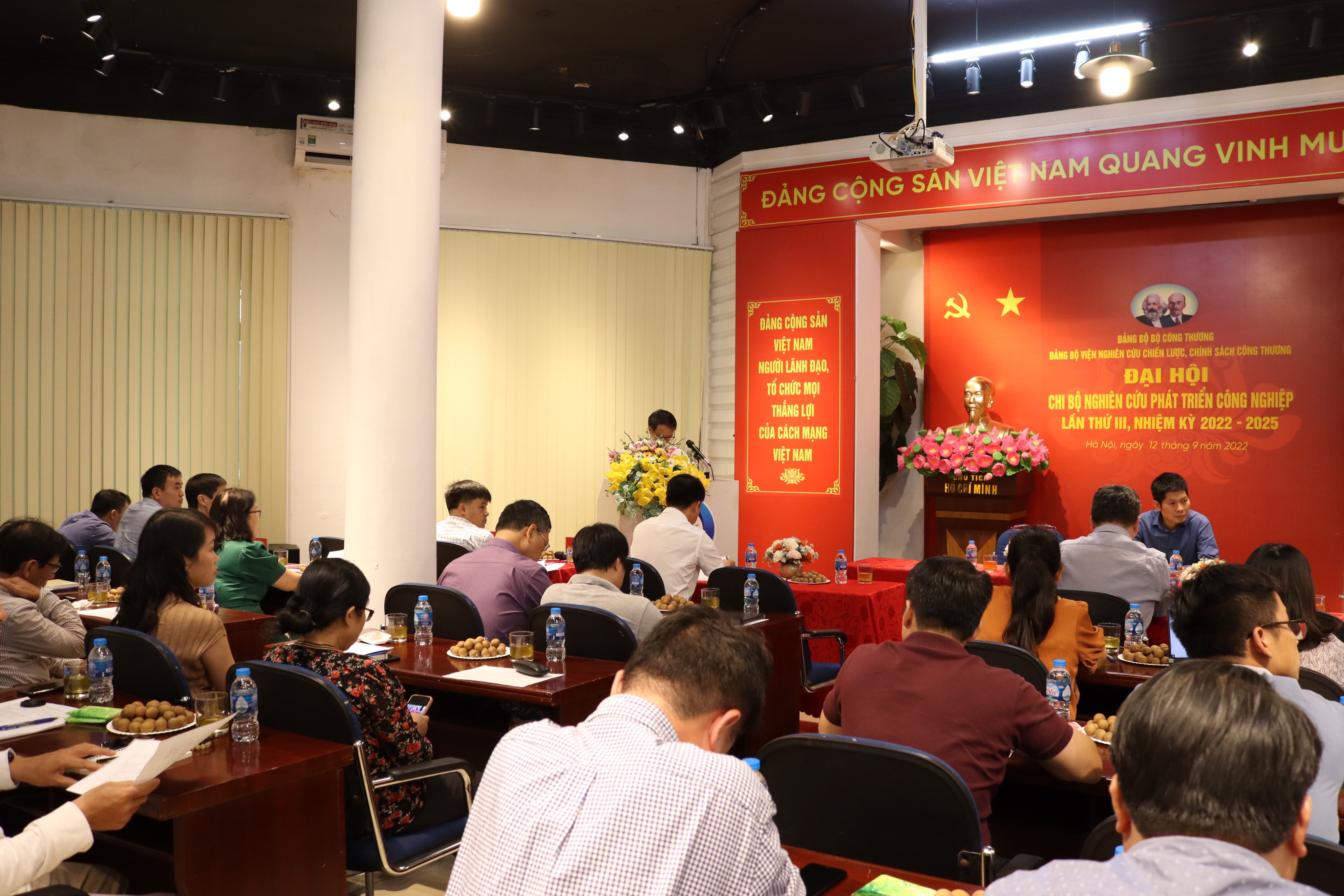 Chiều ngày 12/9/2022, tại trụ sở Viện Nghiên cứu Chiến lược, Chính sách Công Thương - số 17 Yết Kiêu, Nguyễn Du, Hà Nội đã long trọng diễn ra Đại hội Chi bộ Nghiên cứu phát triển Công nghiệp lần thứ III - nhiệm kỳ 2022-2025.