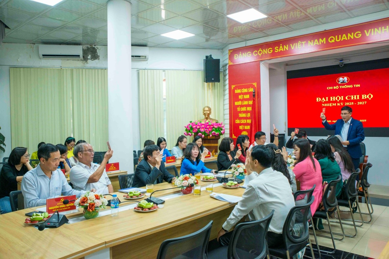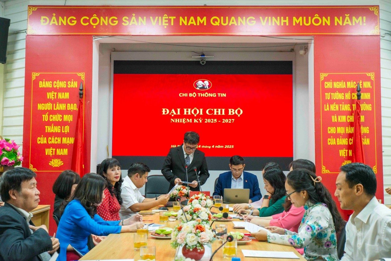 Tại Đại hội, Đồng chí Đỗ Quang - Bí thư Chi bộ nhiệm kỳ 2022 - 2025 đã trình bày Báo cáo chính trị, đánh giá kết quả công tác của Chi bộ Thông tin trong nhiệm kỳ 2022-2025 và đề ra phương hướng, nhiệm vụ, giải pháp cho nhiệm kỳ mới 2025 - 2027. Báo cáo chính trị cho thấy Chi bộ Thông tin đã phát huy trí tuệ tập thể, đoàn kết, kiên trì, khắc phục khó khăn hoàn thành xuất sắc 100% nhiệm vụ và chỉ tiêu mà Nghị quyết Đại hội nhiệm kỳ 2022 - 2025 đã đề ra. Để thực hiện thắng lợi Nghị quyết Đại hội Chi bộ Thông tin nhiệm kỳ 2025-2027, báo cáo chính trị đã đề ra phương hướng: Phấn đấu nâng cao chất lượng sinh hoạt chi bộ gắn với thực hiện tốt kế hoạch công tác chuyên môn; Triển khai áp dụng các giải pháp nhằm nâng cao năng lực lãnh đạo, sức chiến đấu của Chi bộ và chất lượng đội ngũ cán bộ, đảng viên trong Chi bộ; Tiếp tục nỗ lực, phấn đấu, vươn lên trở thành Chi bộ trong sạch vững mạnh; Đẩy mạnh công tác phát triển Đảng viên, giới thiệu quần chúng tích cực đi học lớp tìm hiểu về Đảng Cộng sản Việt Nam, giúp đỡ dìu dắt các quần chúng tích cực được đứng trong hành ngũ của Đảng.